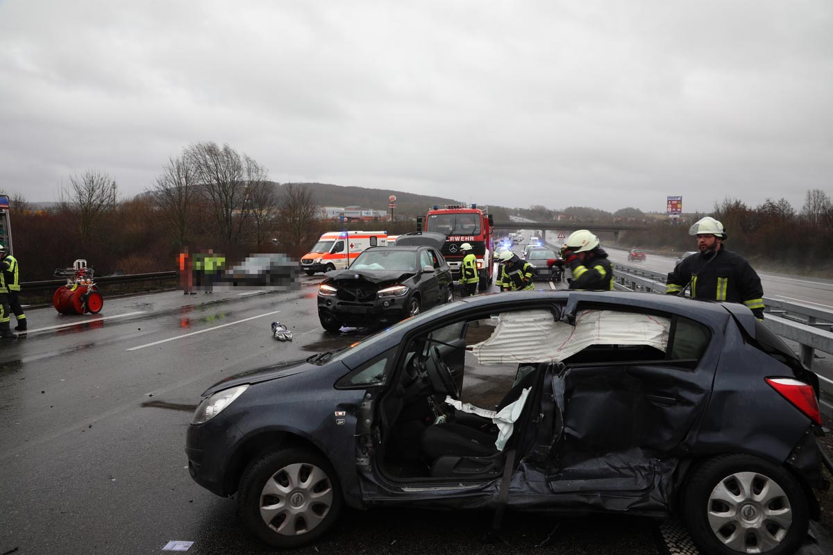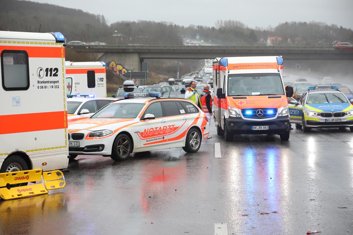 Im Einsatz waren mehrere Rettungsteams, die Notärzte aus Homberg und Melsungen, ein Leitender Notarzt, ein Organisatorischer Leiter Rettungsdienst und der Unfallrettungszug der Feuerwehr Homberg/Efze. Eine Streife der Polizeiautobahnstation Baunatal nahm den Unfall auf.