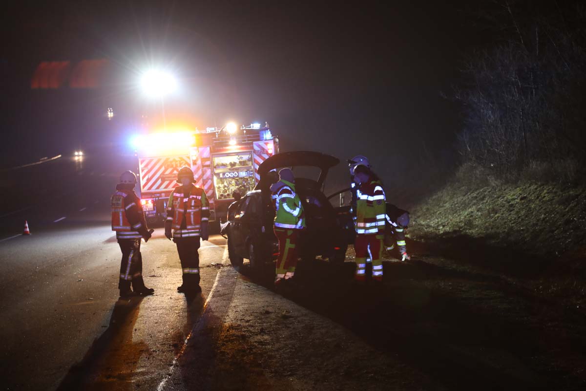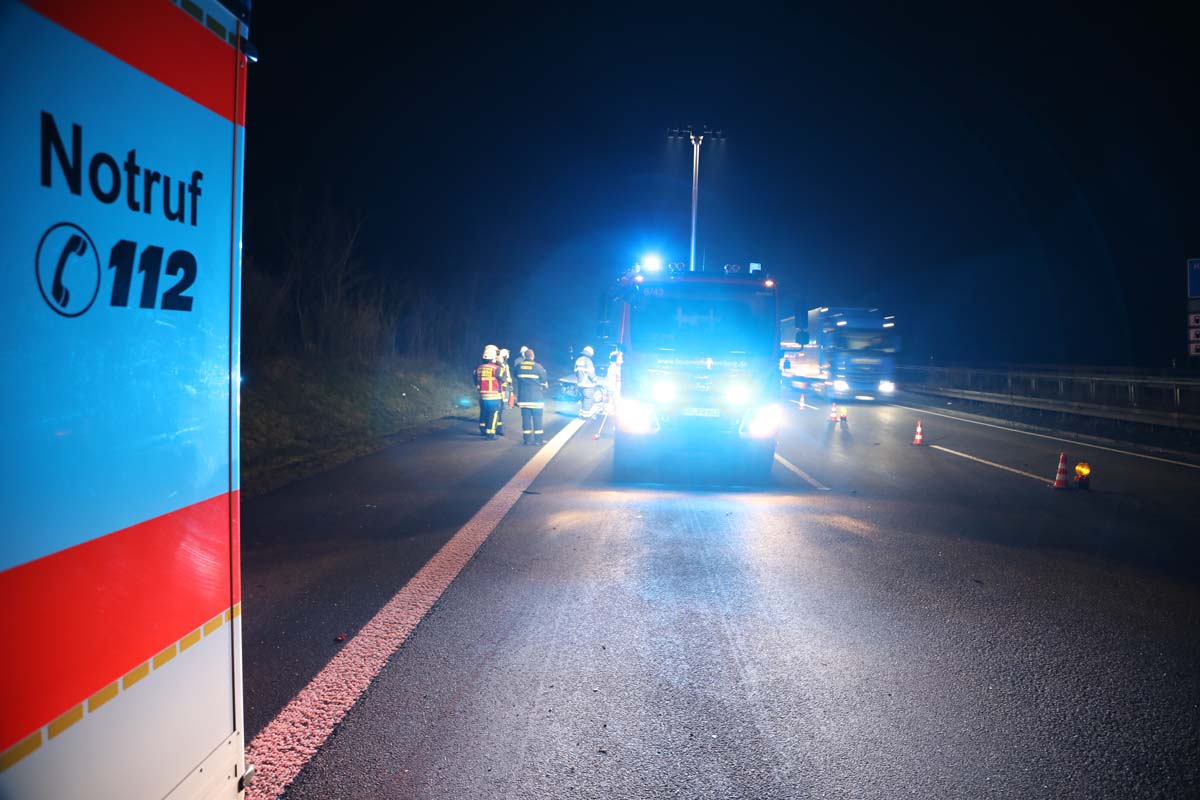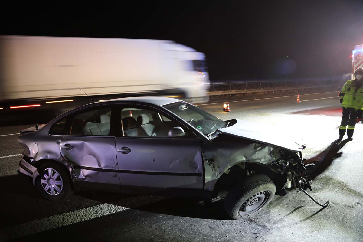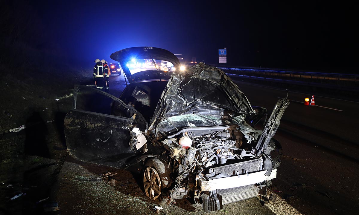 Der Unfall ereignete sich gegen 1:45 Uhr kurz hinter einer Linkskurve. Nach den ersten Ermittlungen der Beamten der Polizeiautobahnstation Baunatal, war die junge Frau auf dem mittleren Fahrstreifen in Richtung Kassel unterwegs. Aus bislang unbekannten Gründen fuhr sie auf den Passat eines 46 Jahre alten Mannes aus Halle/Westfalen auf, der einen „Knall“ bemerkte. Dessen VW Passat wurde in der Folge gegen die Mittelleitplanke geschleudert, rutschte anschließend über die Autobahn und kam auf dem rechten Fahrstreifen zum Stehen.