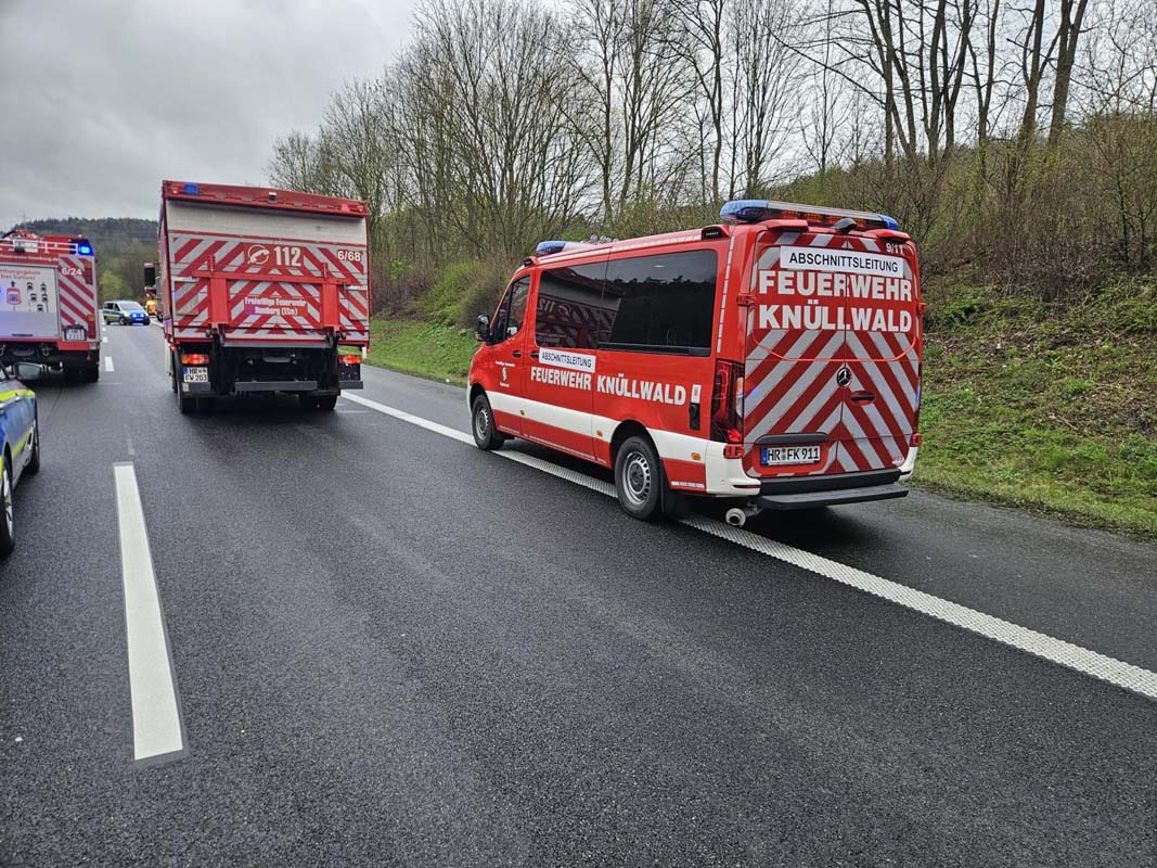 KNÜLLWALD. Am Donnerstagmorgen, gegen 8.35 Uhr, ereignete sich auf der A7 zwischen den Anschlussstellen Homberg/Efze und Hersfeld/West ein Verkehrsunfall, bei dem insgesamt acht Personen verletzt wurden, eine davon schwer.