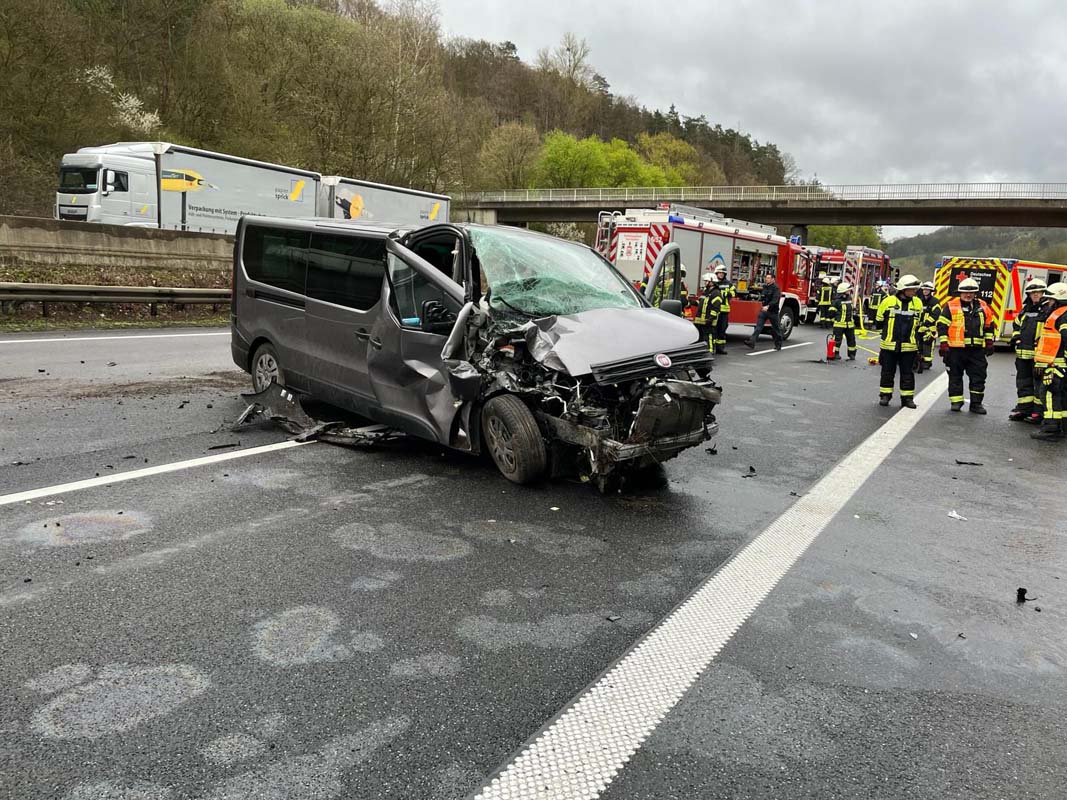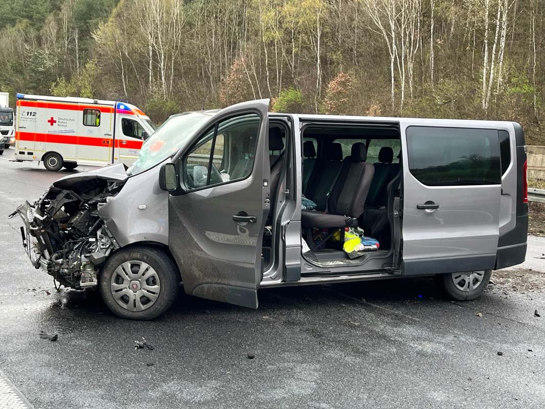 Ersten Erkenntnissen zufolge überholte der Fahrer des vollbesetzten Kleinbusses nach dem Passieren der Anschlussstelle Homberg/Efze in einer leichten Linkskurve einen Sattelzug. Aus noch ungeklärten Gründen kollidierte er dabei mit dem Schwertransporter, verlor daraufhin die Kontrolle über sein Fahrzeug und prallte gegen die Leitplanke. Der Kleinbus kam quer zur Fahrbahn zum Stehen. Bei dem Unfall wurde ein Insasse schwer, die übrigen sieben Insassen des Kleinbusses leicht verletzt. Die Verletzten, allesamt polnischer Herkunft, wurden zur medizinischen Versorgung in umliegende Krankenhäuser gebracht.