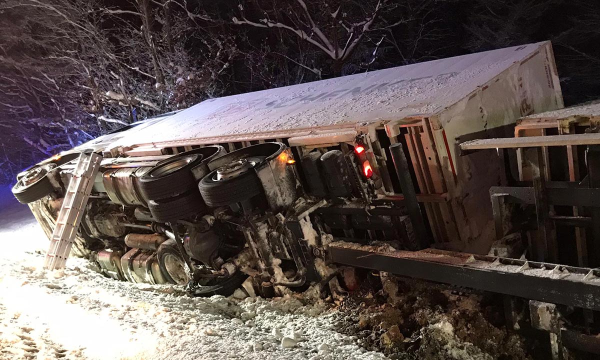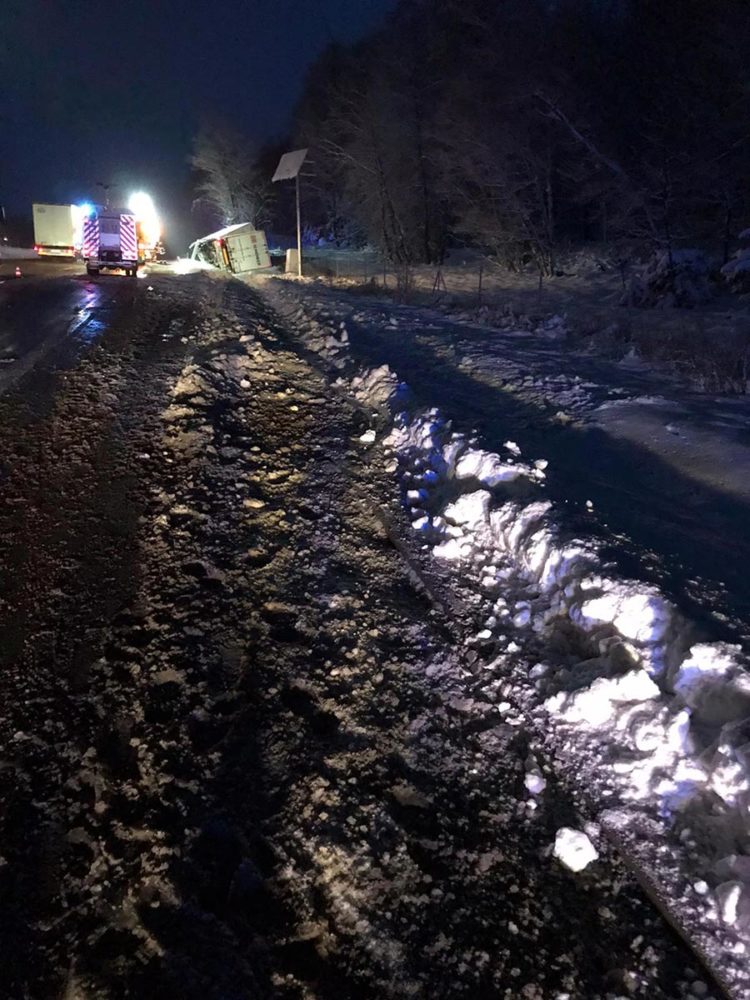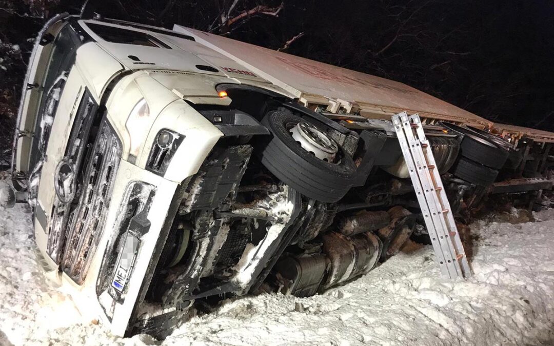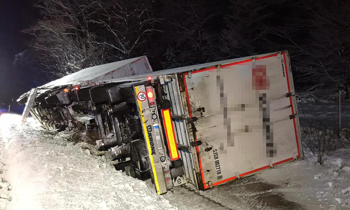 Der Lastzugfahrer aus der Tschechischen Republik befuhr gegen 5:10 Uhr den rechten von drei Fahrstreifen in nördlicher Fahrtrichtung. Vermutlich aufgrund der Witterung nicht angepasster Geschwindigkeit geriet der Lkw im Kurvenbereich eines Gefällstücks ins Rutschen.