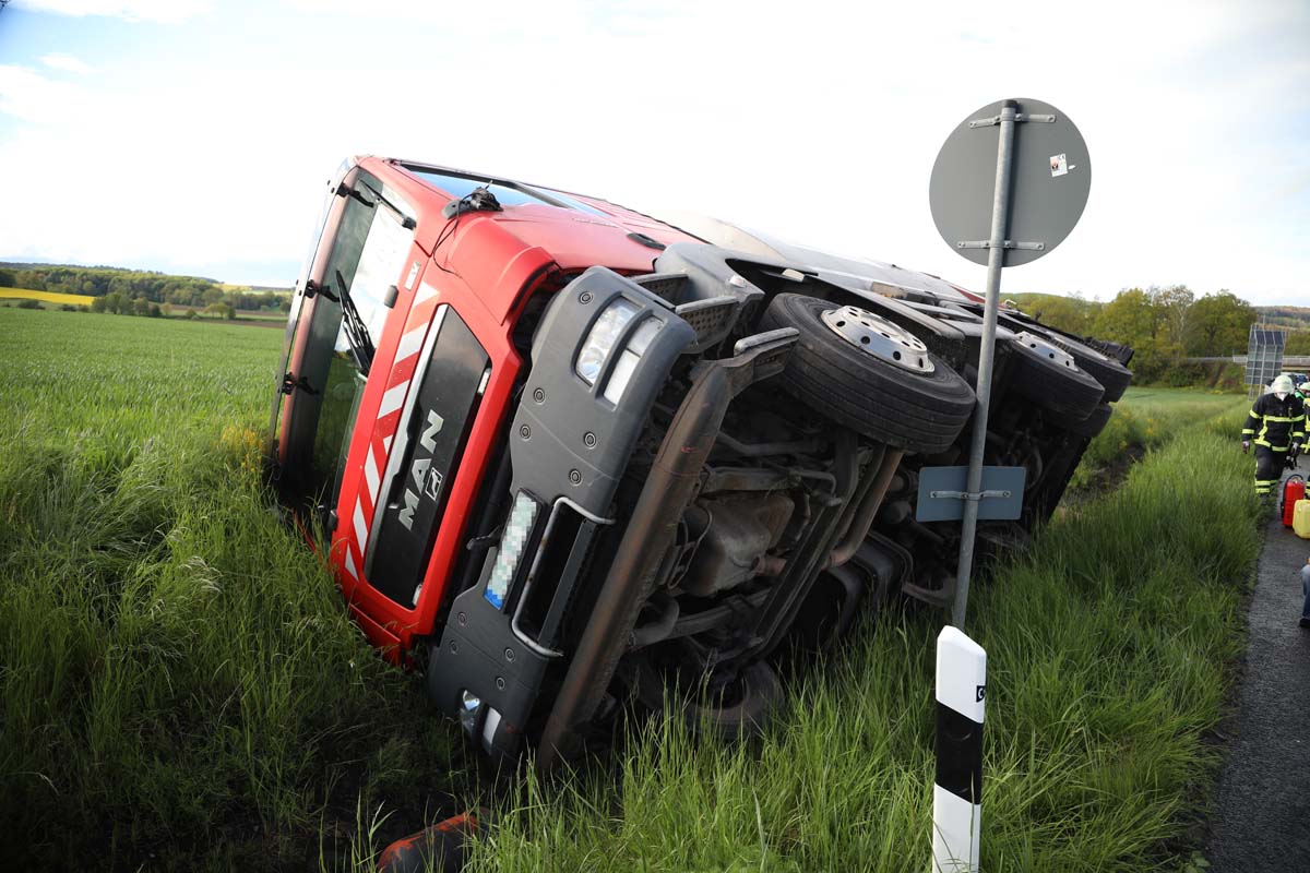 Die Unfallursache ist noch nicht geklärt. Der 31-Jährige war gegen 17:30 Uhr in Richtung Süden unterwegs. Er geriet kurz vor der Zufahrt zur Tank- und Rastanlage Hasselberg nach rechts von seiner Fahrspur ab, überquerte den Standstreifen und fuhr ungebremst auf den Grünsteifen. Hier kippte der Lkw auf die rechte Seite, ohne dabei schwerwiegend beschädigt zu werden. Andere Fahrzeuge waren nach derzeitigem Ermittlungsstand der Polizei nicht an dem Unfall beteiligt.