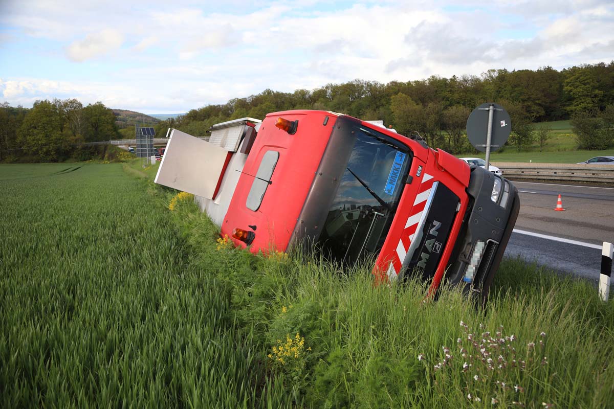 KNÜLLWALD. Ohne schwerwiegende Folgen für Mensch und Material blieb am späten Mittwochnachmittag ein Lkw-Unfall auf der A 7 zwischen den Anschlussstellen Malsfeld und Homberg/Efze.