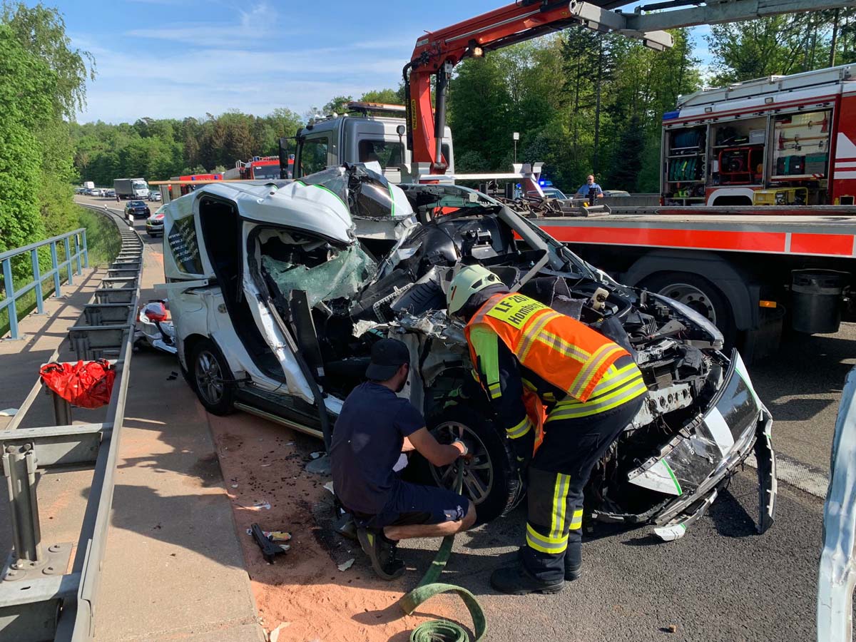 Vor Ort war die Feuerwehr Homberg mit sieben Fahrzeugen und 25 Leuten, ein Rettungteams des DRKs aus dem Landkreis Hersfeld-Rotenburg sowie ein zweites Rettungsteam aus Knüllwald und zwei Streifen der Polizeiautobahnstation Bad Hersfeld. (wal)