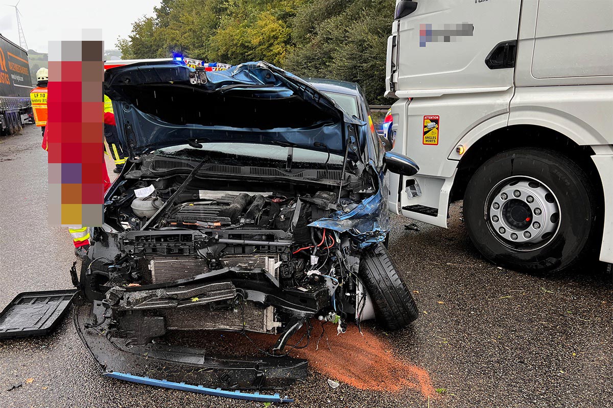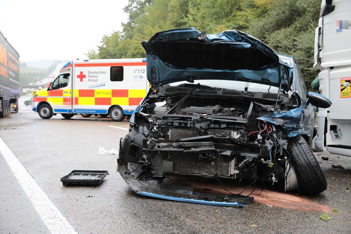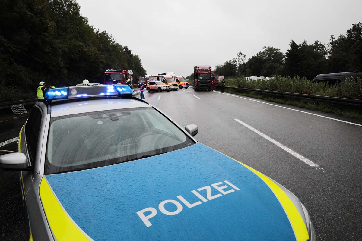 An dem Unfall waren vier Lkw, darunter zwei Sattelzüge ein und derselben Firma, sowie zwei Pkw beteiligt. Am Ende der Unfallstelle kam es zudem noch zu einem leichten Folge-Auffahrunfall, an dem zwei Pkw beteiligt waren.