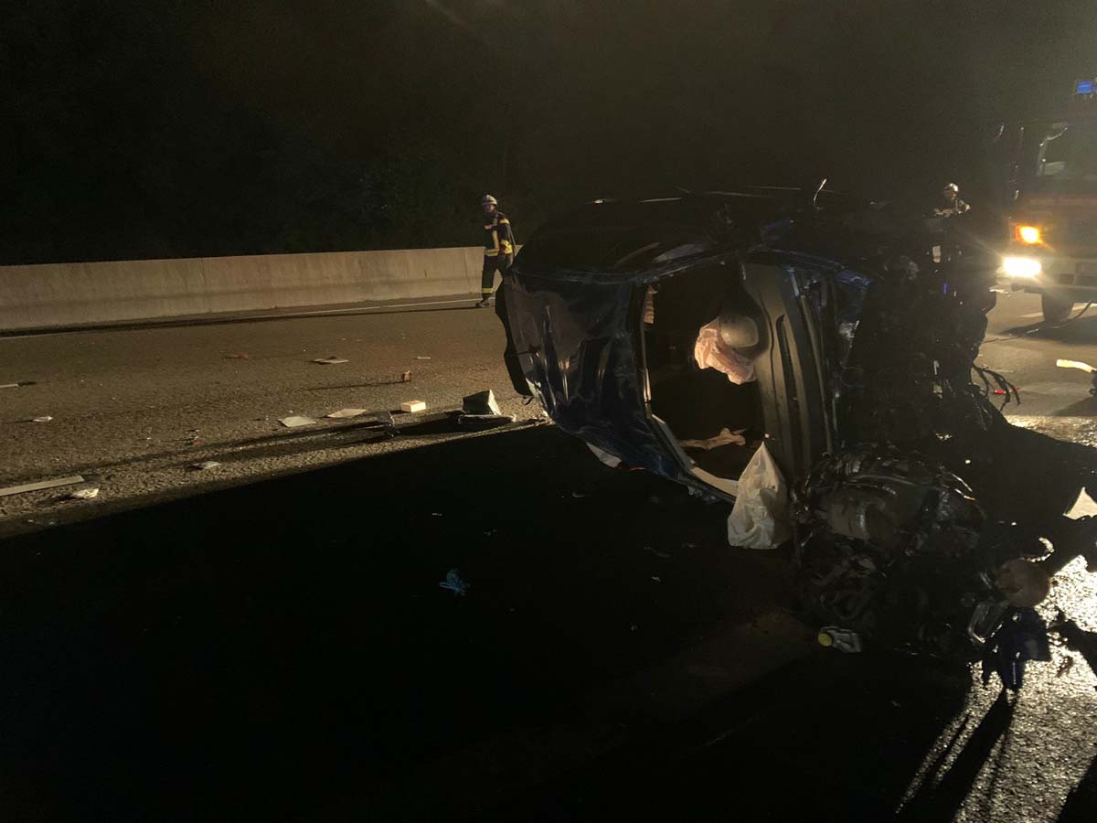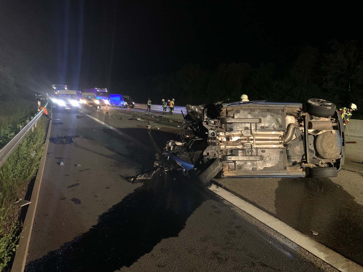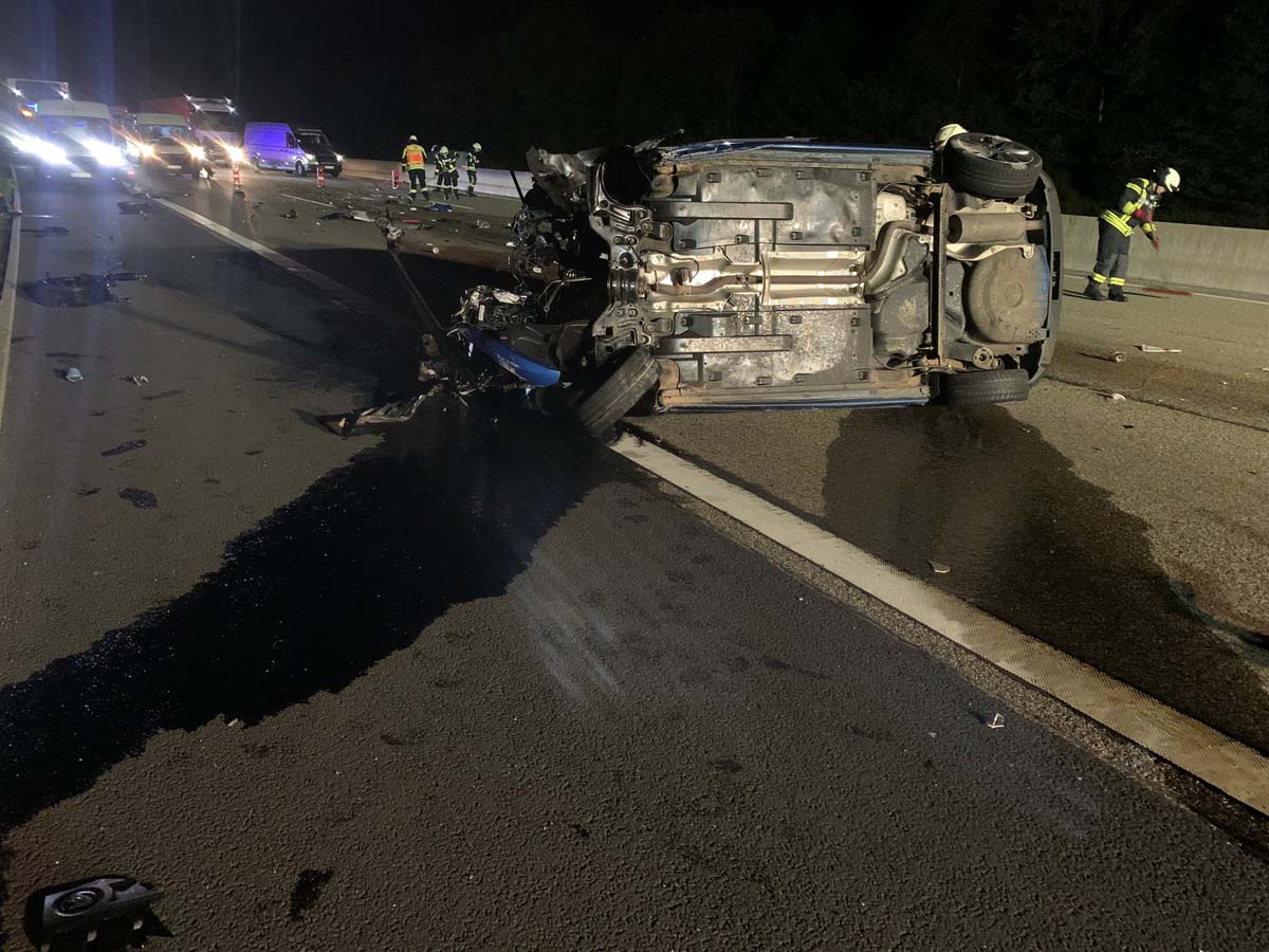 Sie geriet nach links von ihrem Fahrstreifen ab und prallte mit hoher Wucht gegen die Betongleitwand der Autobahn. In der Folge überschlug sich der Pkw und kam auf dem rechten Fahrstreifen zum Stillstand. Bei dem Unfall wurde der Motorblock aus dem Auto gerissen und rutschte über die A 7.