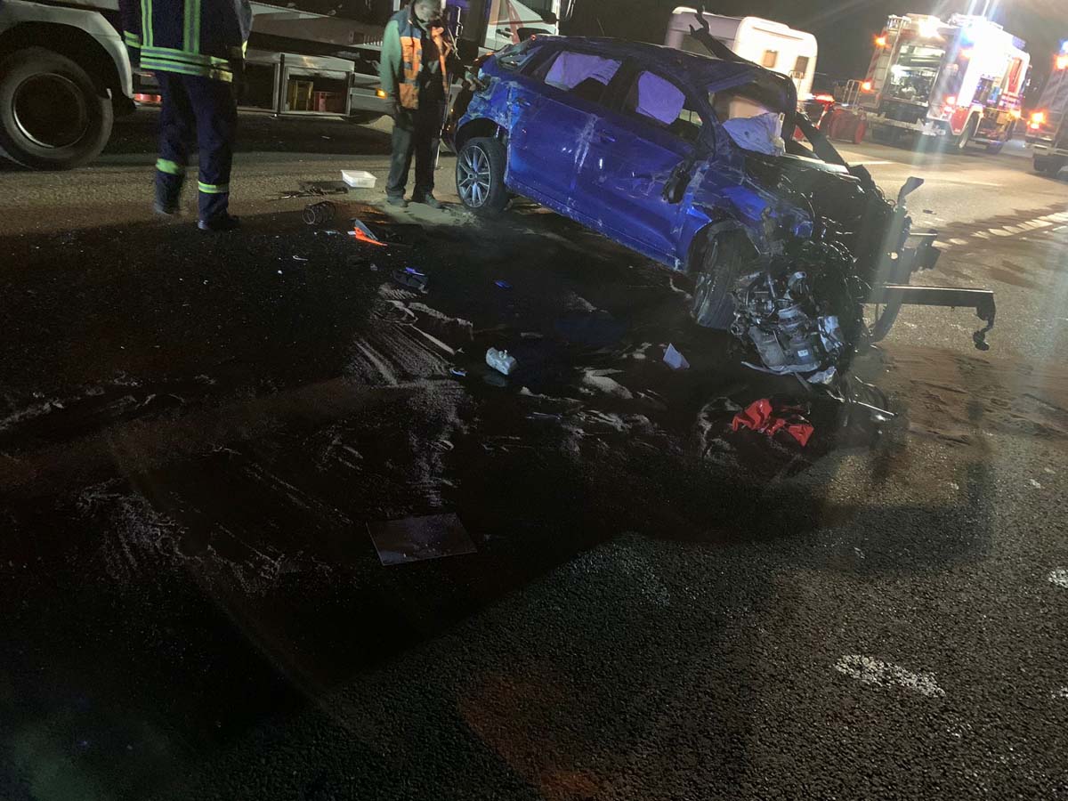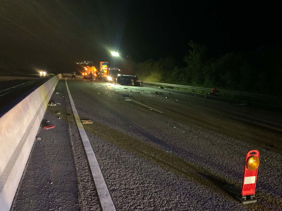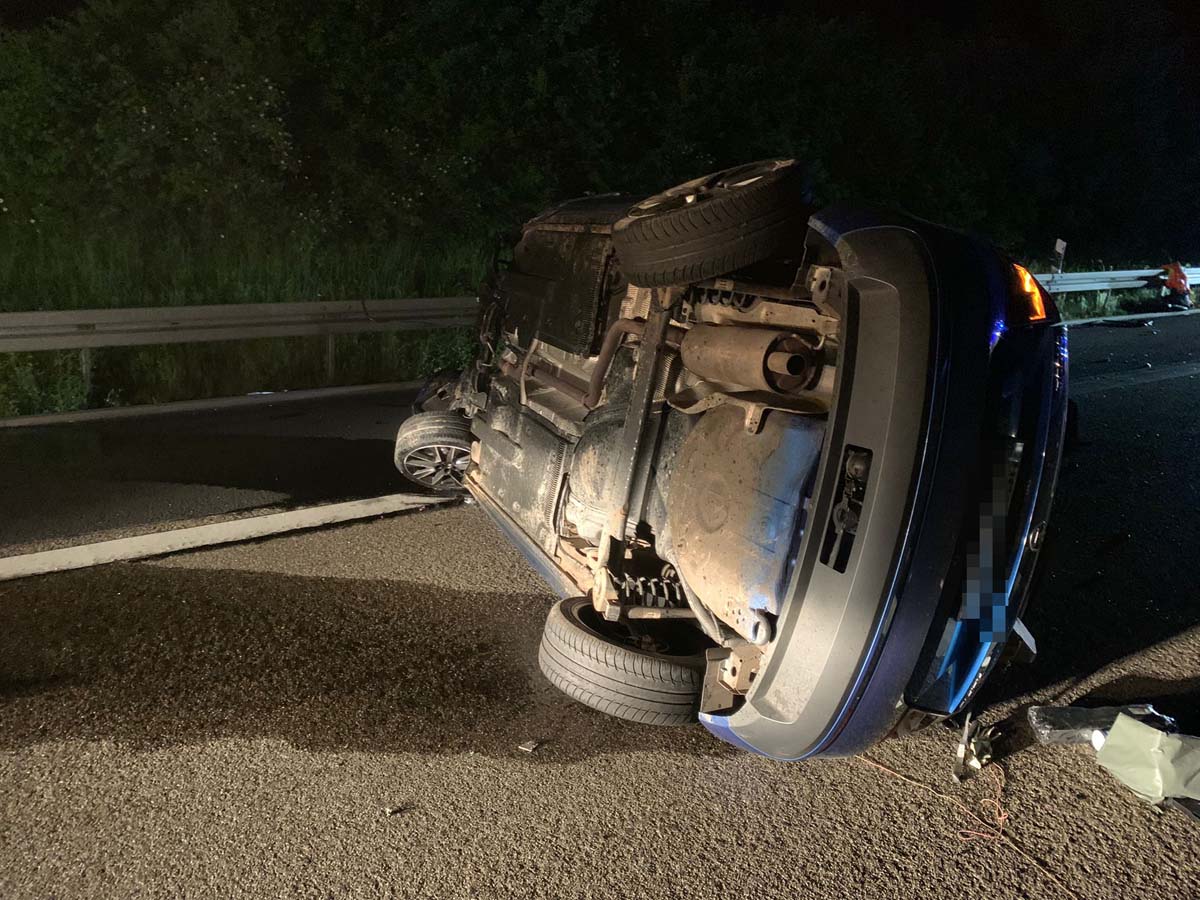 Sie geriet nach links von ihrem Fahrstreifen ab und prallte mit hoher Wucht gegen die Betongleitwand der Autobahn. In der Folge überschlug sich der Pkw und kam auf dem rechten Fahrstreifen zum Stillstand. Bei dem Unfall wurde der Motorblock aus dem Auto gerissen und rutschte über die A 7.
