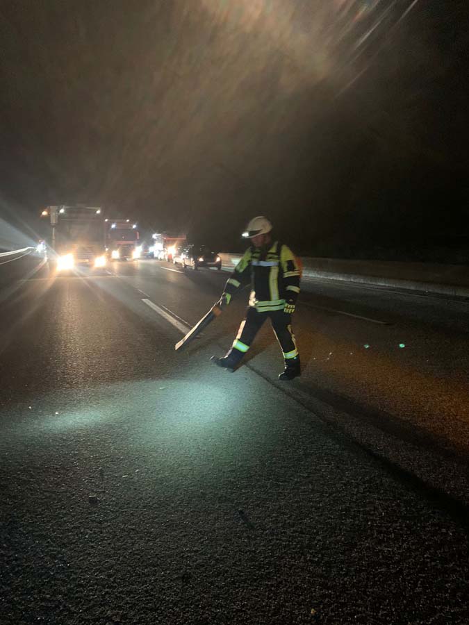 Durch die Trümmerteile des Skoda, die sich auf rund 150 Meter verteilten, wurde der Mercedes eines hinterherfahrenden 32-Jährigen aus Bad Hersfeld beschädigt. Die Fahrbahn war für die Bergungsarbeiten bis 4:30 Uhr zeitweise voll gesperrt.