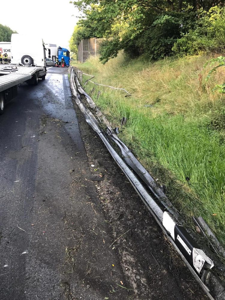 Beide Fahrzeuge wurden nach rechts abgewiesen. Der Sattelzug stieß leicht mit einem auf dem rechten Fahrstreifen fahrenden Tesla eines 41-Jährigen aus Hameln zusammen.