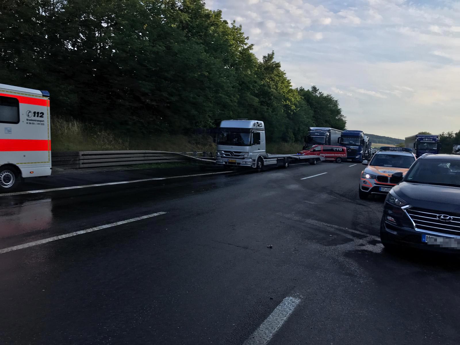 KNÜLLWALD. Nach einem Unfall mit einem Sattelzug zwischen den Anschlussstellen Homberg/Efze (Remsfeld) und Bad Hersfeld West (Aua) musste die Autobahn 7 am Dienstagmorgen in Fahrtrichtung Süden voll gesperrt werden. Bei dem Unfall wurde ein 58 Jahre alter BMW-Fahrer aus Melsungen leicht verletzt.