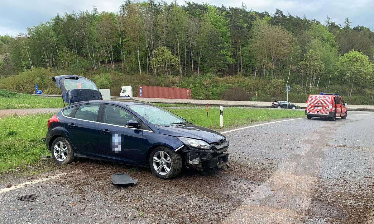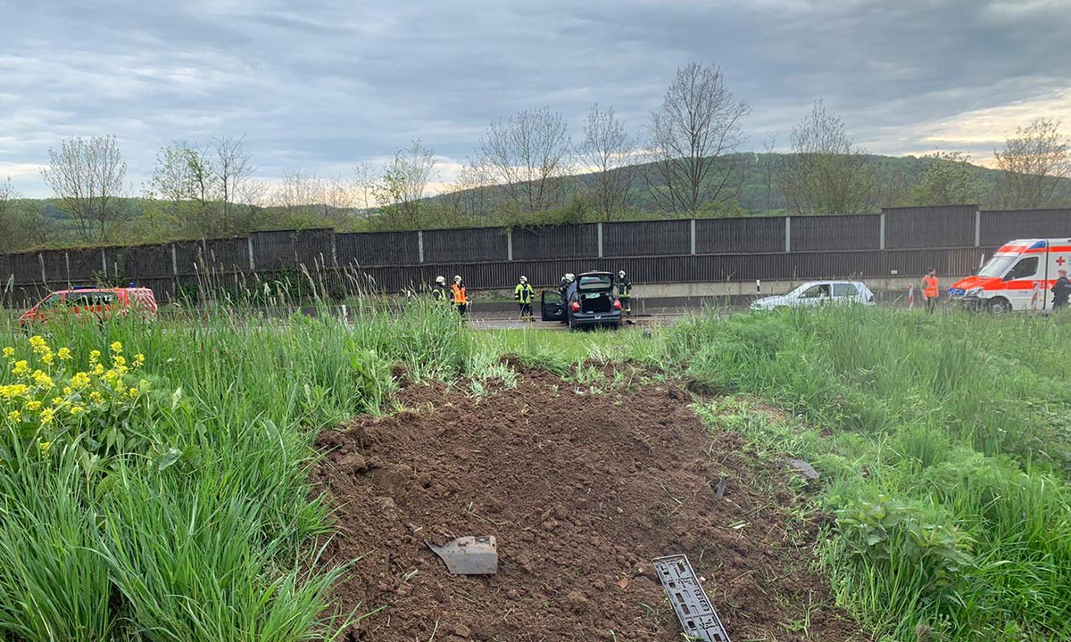 Statt im Kurvenbereich nach rechts zu fahren, fuhr er geradeaus. Der Pkw prallte und überwand den Erdwall der Anschlussstelle, holperte über den Grünbereich und kam im Auffahrtsbereich zur Autobahn in Fahrtrichtung Süden zum Stillstand.