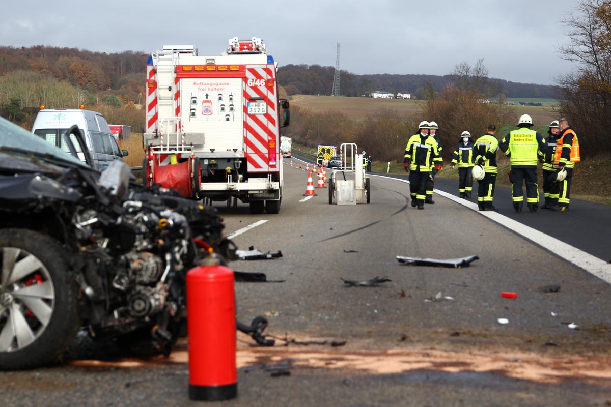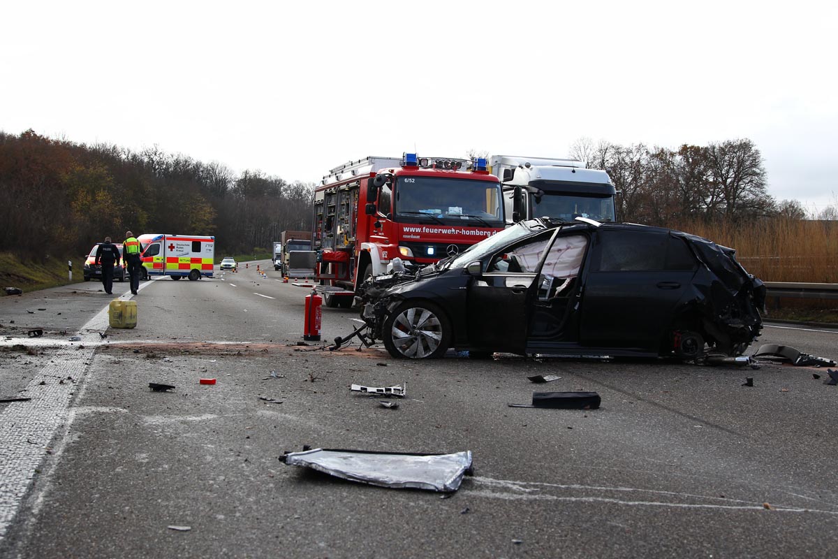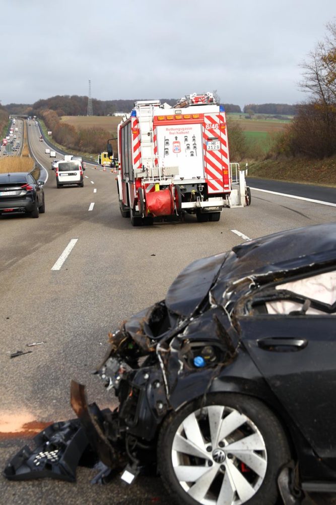 Der Fahrer wurde nicht, wie zunächst vermutet, in dem Unfallwrack, das auf dem mittleren Fahrstreifen zum Stillstand kam, eingeklemmt. Ersthelfer kümmerten sich um die drei Fahrzeuginsassen und alarmierten die Rettungskräfte.
