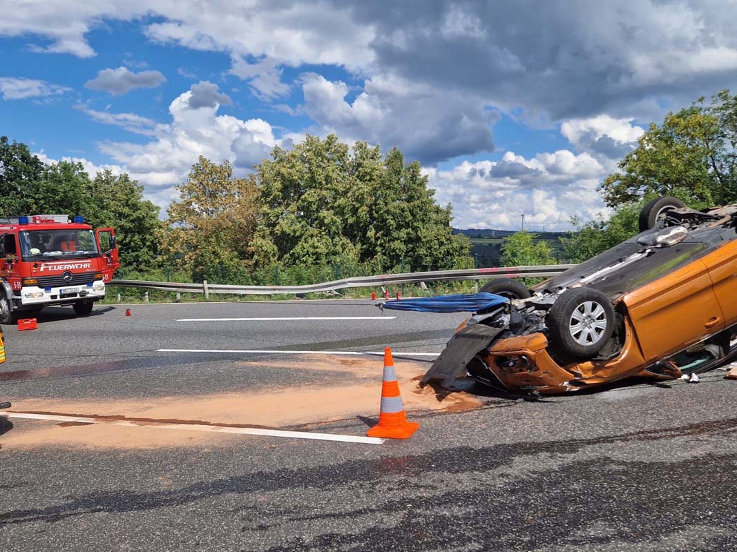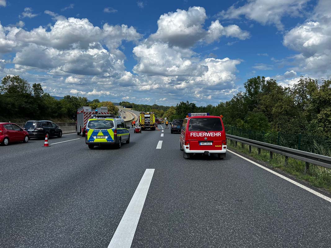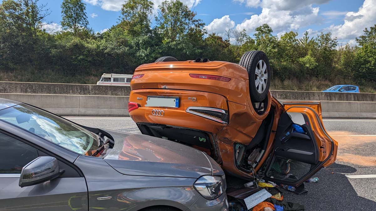 Aufgrund eines vorausgegangenen Unfalls und des noch andauernd Staus wegen des mittlerweile gelöschten Sattelaufliegers sowie nicht angepasster Geschwindigkeit, übersah ein Audifahrer einen stehenden Mercedes in Höhe des Parkplatzes Quillerwald. Der Audi überschlug sich bei dem Aufprall. Ersthelfer hatten die Insassen bei Eintreffen des Rettungsdienstes bereits befreit. Rettungsteams brachten sie nach ihrer medizinischen Erstversorgung in umliegende Krankenhäuser. Die Verletzungen der beiden Fahrzeuginsassen sollen nicht lebensbedrohlich sein. (wal)
