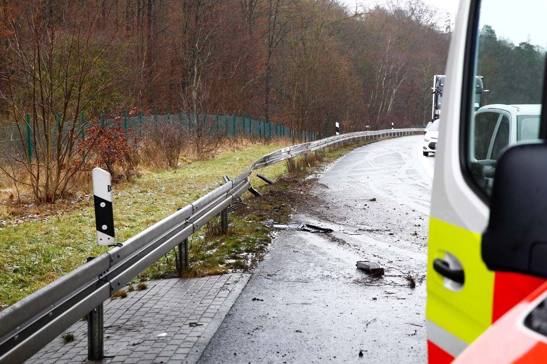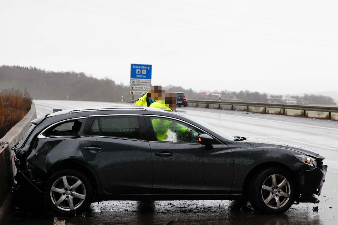 Wie eine Polizeisprecherin am Montag auf Anfrage sagte, war die Fahrbahn zum Zeitpunkt des Unfalls stellenweise mit Schneematsch bedeckt. Ein 59 Jahre alter Mann aus Petersberg (Landkreis Fulda) geriet mit seinem Mazda ins Schleudern und berührte dabei den VW Golf einer 44 Jahre alten Frau aus Neustadt an der Saale. In der Folge prallte der Mazda gegen die rechte Leitplanke, rutschte über alle drei Fahrspuren und krachte mit dem Heck gegen die Betonwand der Fahrbahntrennung. Die Frau konnte ihren Golf auf dem Standstreifen stoppen.