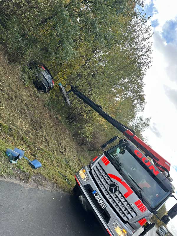 KNÜLLWALD. Kurze Zeit später, gegen 9:30 Uhr, kam es zu einem weiteren Alleinunfall bei dem ein 26-Jähriger aus Fladungen die Kontrolle über seinen VW verlor. Nach ersten Erkenntnissen der Polizei sei der in Richtung Kassel fahrende Mann wegen nicht angepasster Geschwindigkeit auf der nassen Fahrbahn ins Schleudern gekommen und infolgedessen nach rechts von der Fahrbahn abgekommen. Bei dem Unfall entstand an dem VW ein Totalschaden, der auf circa 35.000 Euro beziffert wird. Gegen 11:20 Uhr war die Bergung des Fahrzeugs abgeschlossen, zu größeren Verkehrsbehinderungen kam es nicht. (ld)