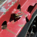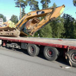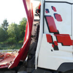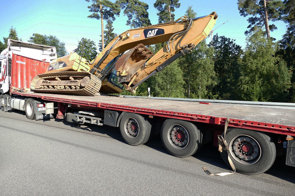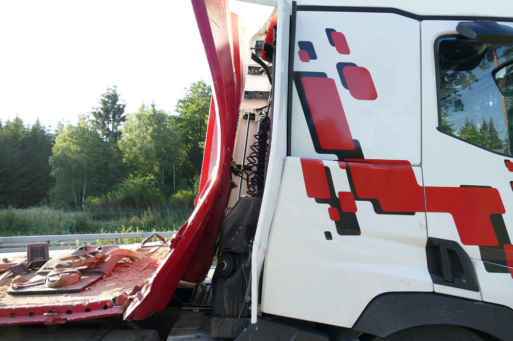 Die Folge: Der Bagger verrutschte auf der Ladefläche, zerdrückte die Stirnwand des Sattelanhängers und schrammte buchstäblich „haarscharf “ am Fahrerhaus der Zugmaschine vorbei. Anschließend schlug die tonnenschwere Arbeitsmaschine auf dem Seitenstreifen auf. Aufgrund des Bremsmanövers waren die Sicherungsketten, mit denen der Bagger auf der Ladefläche fixiert war, aus ihren Zurr-Ösen gerissen.