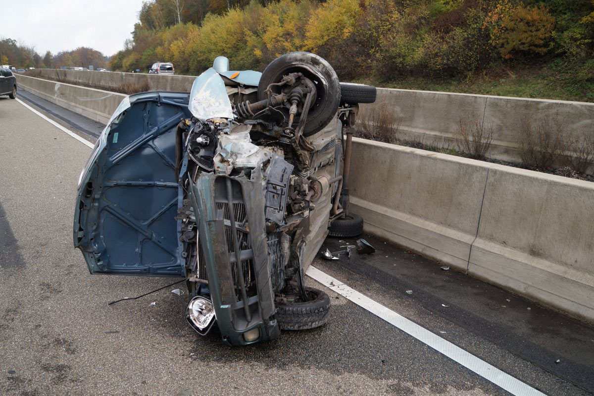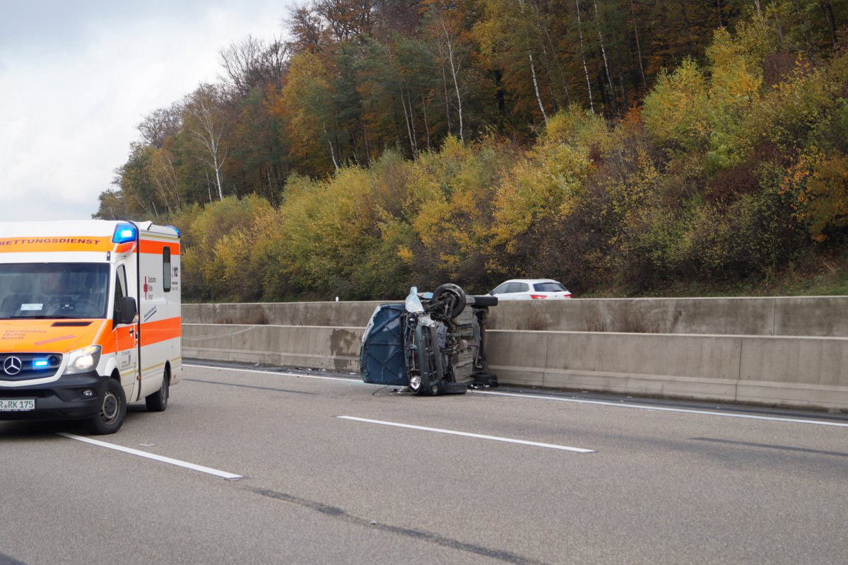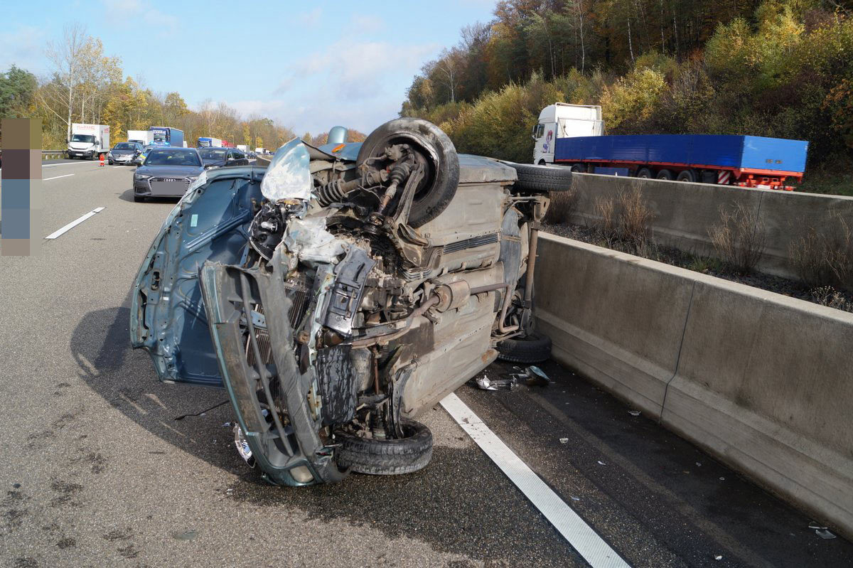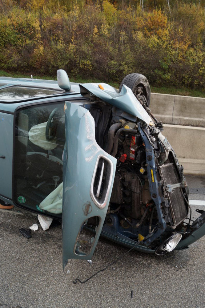 Mit der Hilfe von Verkehrsteilnehmern konnte sie sich noch vor dem Eintreffen des alarmierten Rettungsdienstes aus dem Fahrzeug befreien. Die Ersthelfer betreuten die Frau und sorgten mit Decken für den Wärmeerhalt.