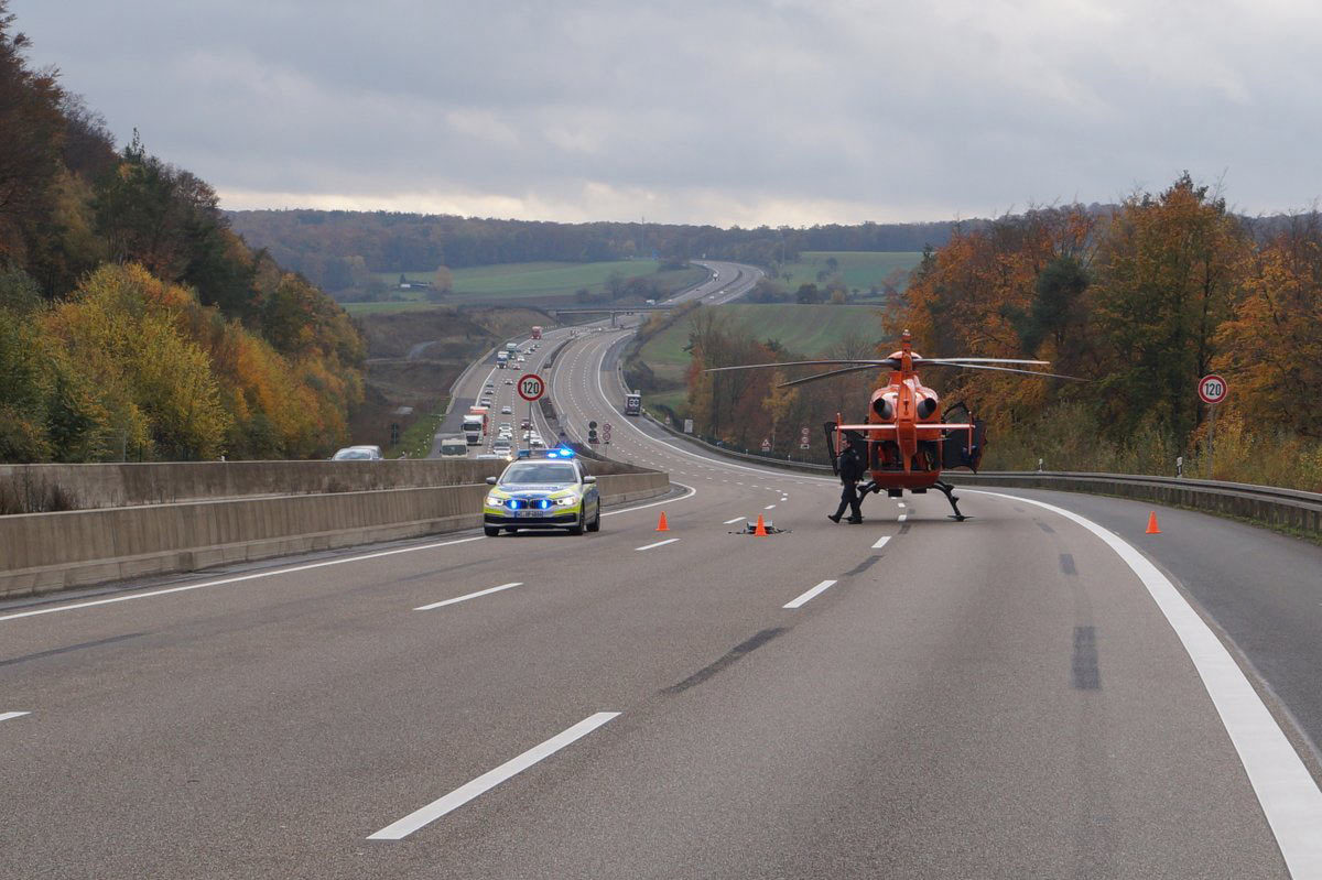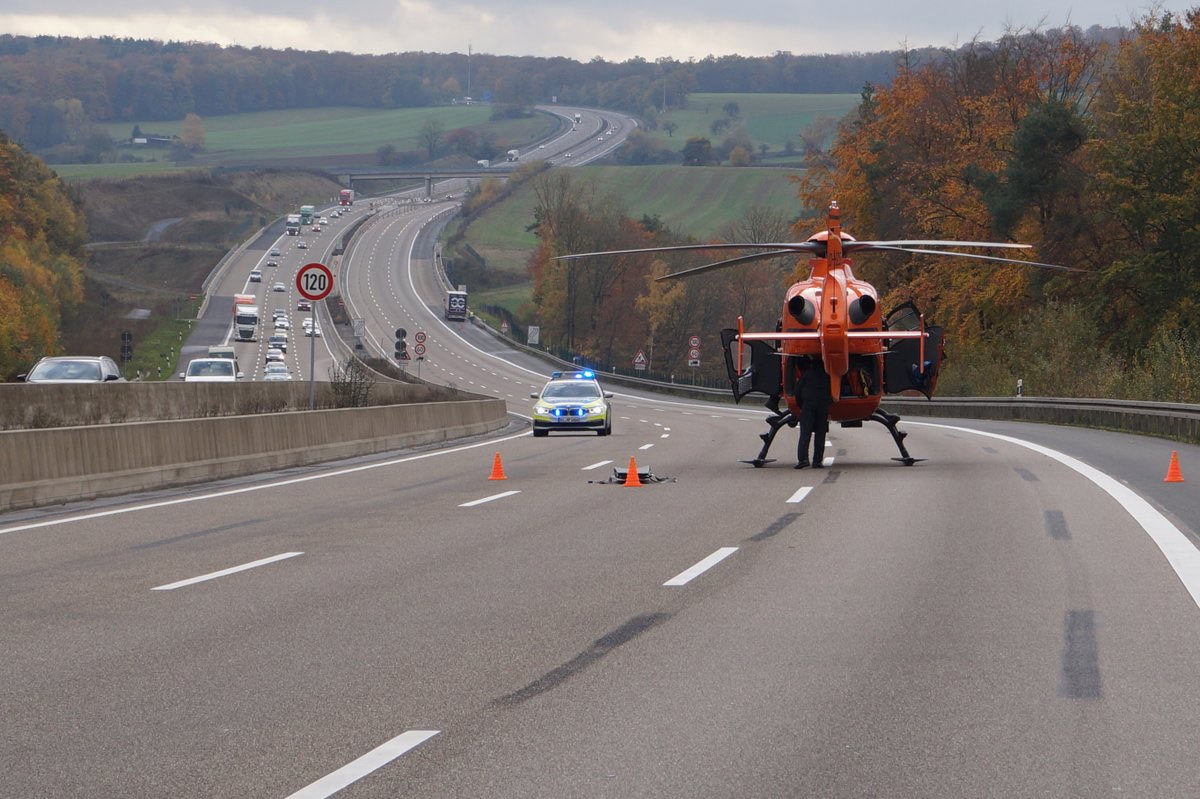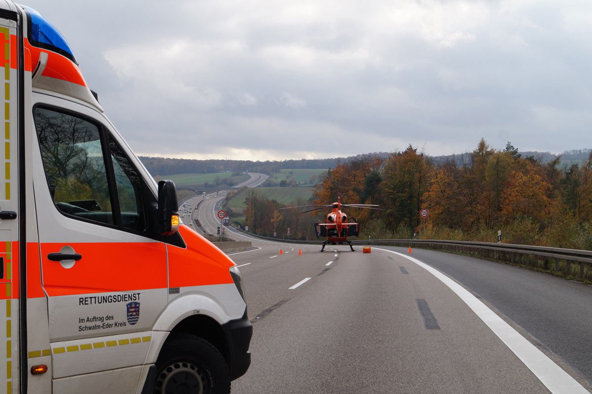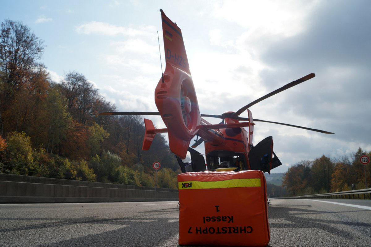 Im Einsatz waren erstklassige Ersthelfer, ein Rettungs- und ein Notarztteam, der Rettungshubschrauber Christoph 7 und eine Streife der Polizeiautobahnstation Baunatal. (ubr)