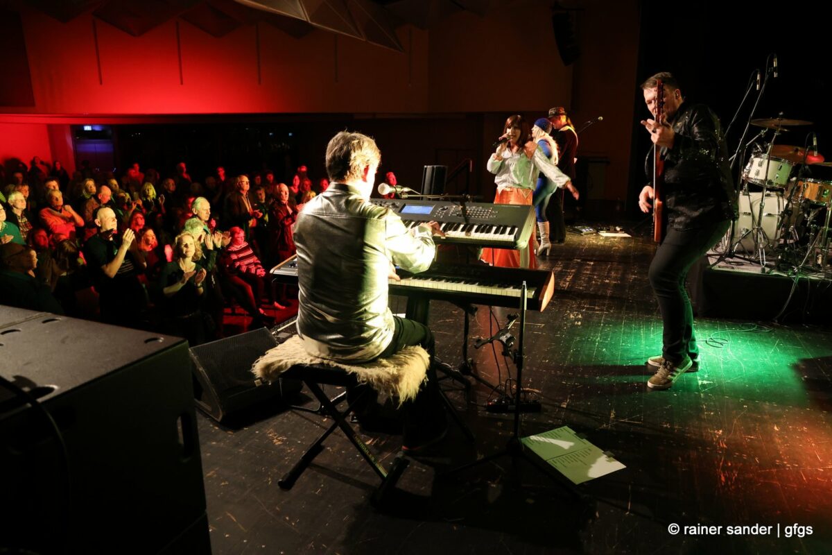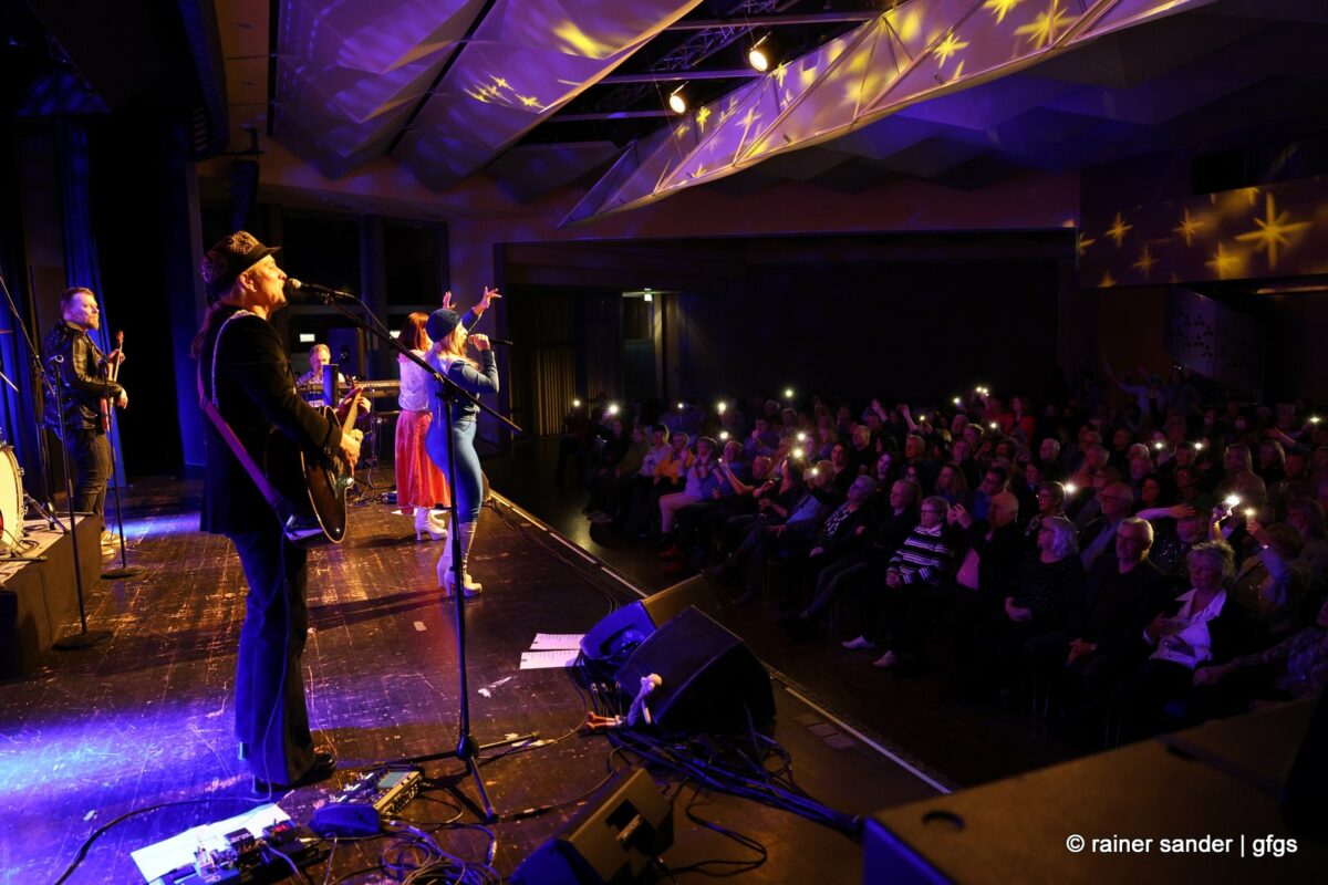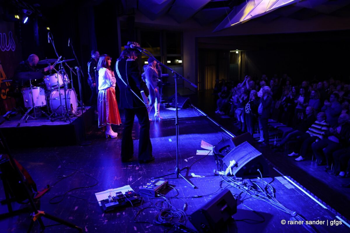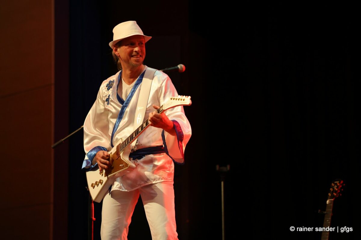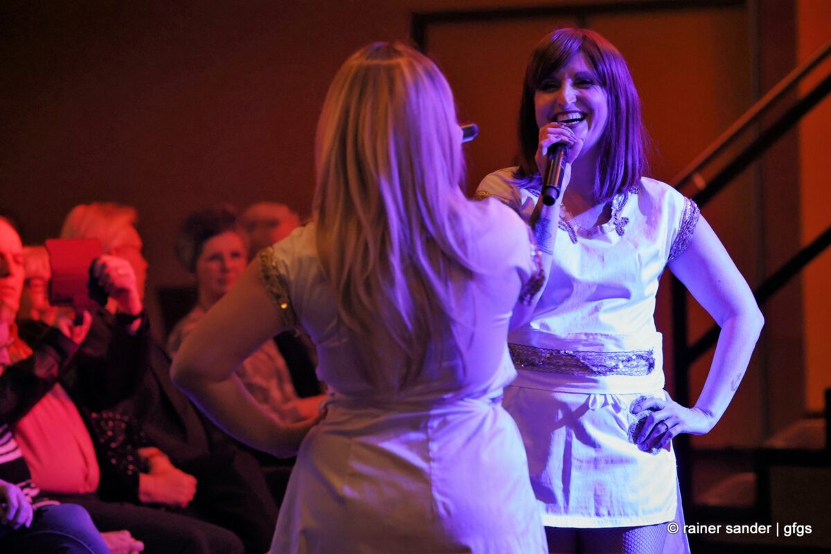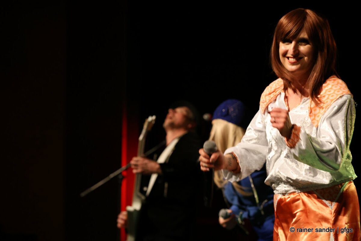 Die Sängerinnen erzählen immer wieder Geschichten und Anekdoten aus der Band-Historie der Originale. Bei Does Your Mother Know hat Björn im Übungsraum vorgesungen, wie er sich das Lied vorstellt und die anderen drei waren überzeugt, dass er es auch bei der Schallplattenaufnahme singen sollte. So war beim Livekonzert von Voulez Vous auch Björn alias Matthias Stingl am Mikrofon. Mit Dancing Queen endete das offizielle Programm. Als Zugabe gab es Thank You zu hören, ohne dass die Musikerinnen und Musiker von der Bühne gelassen wurden und schließlich forderte das Lohfeldener Publikum eine weitere Zugabe. Die stand nicht auf der Liste, aber mit Summernight City gelang auch diese. Ein schöner Konzertabend mit unvergesslicher und zeitloser Musik. (Rainer Sander)