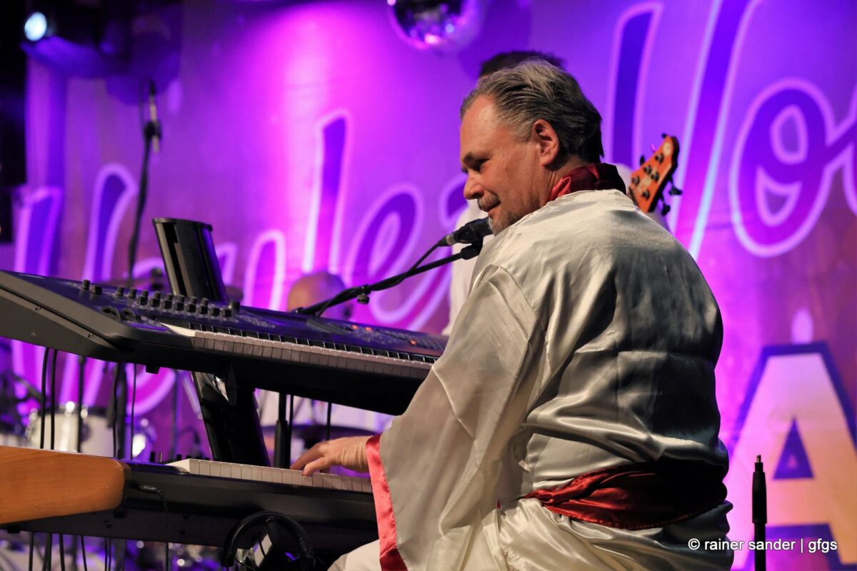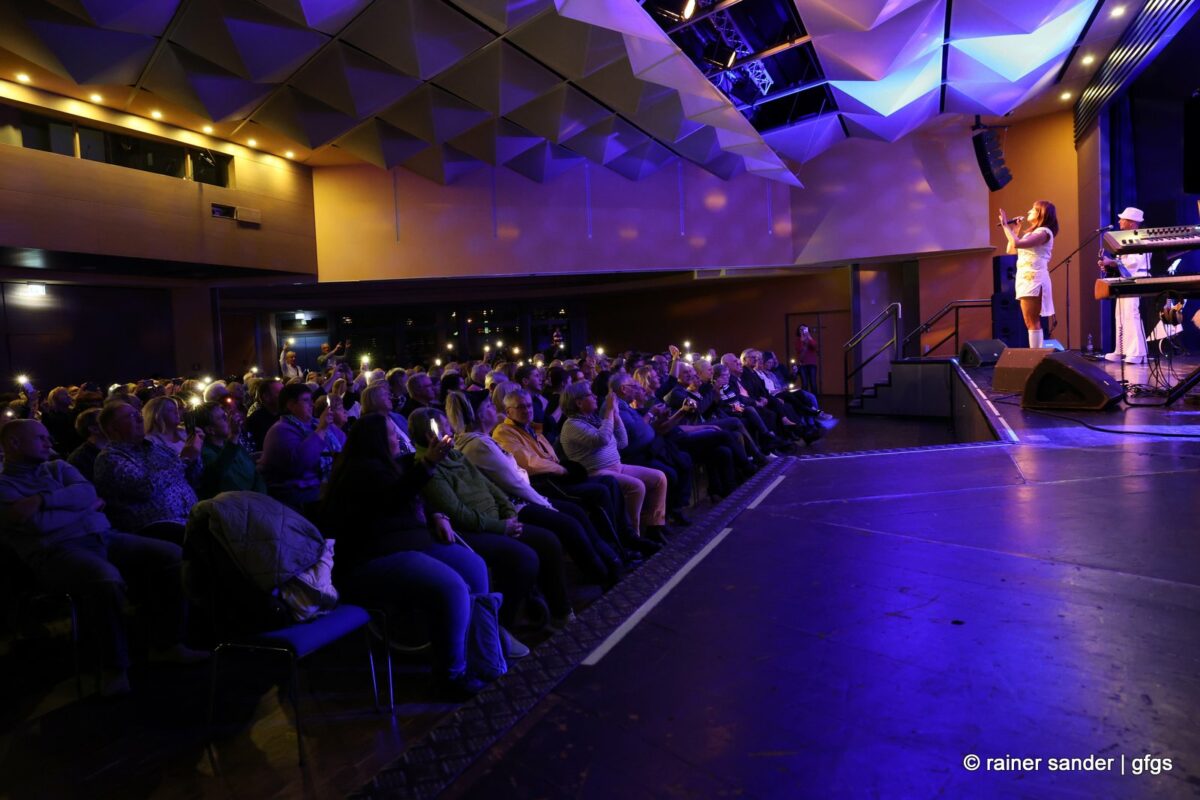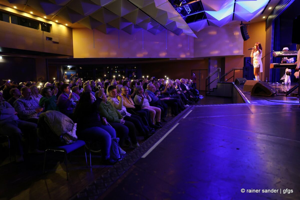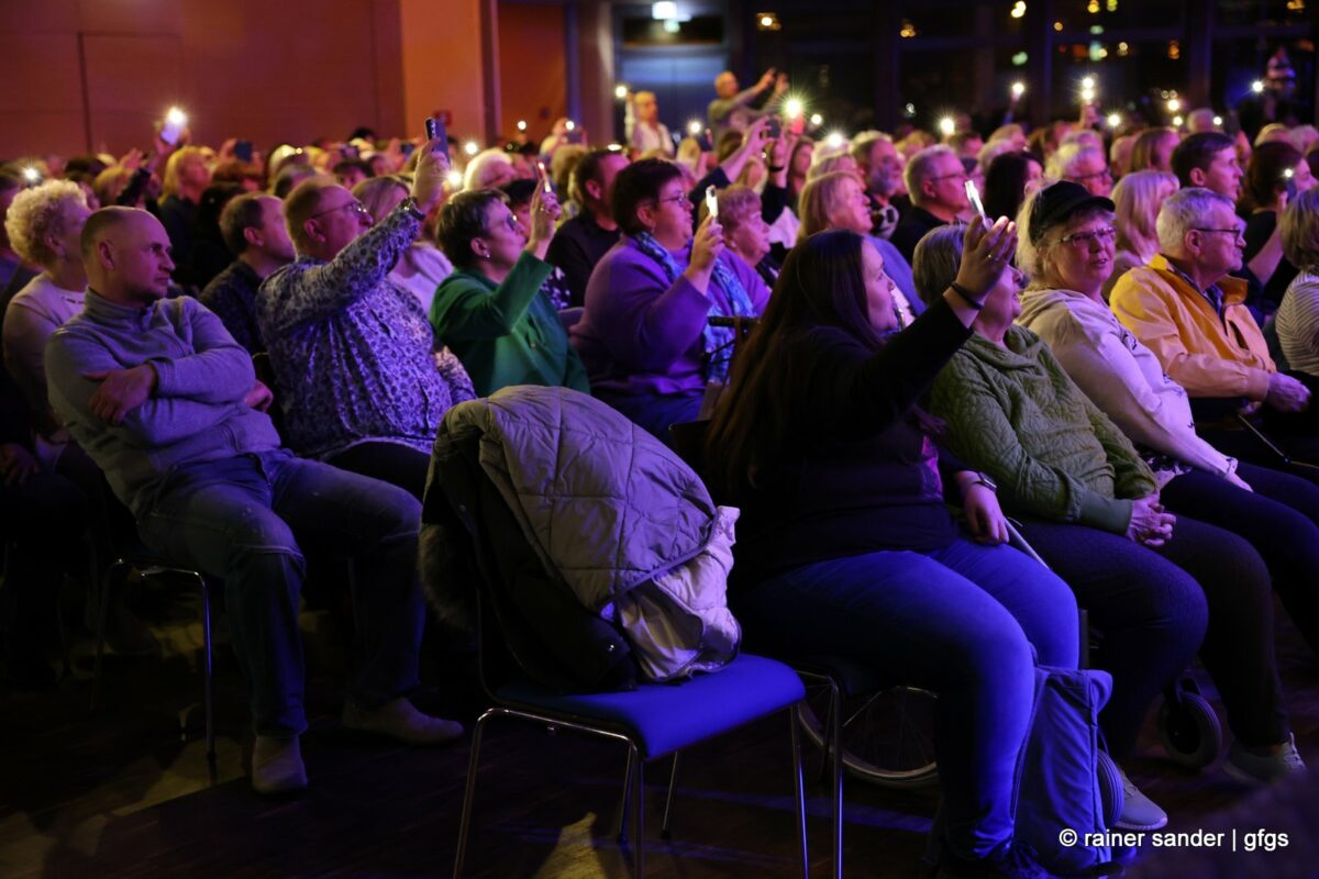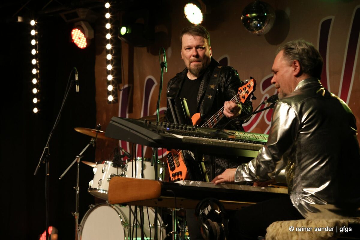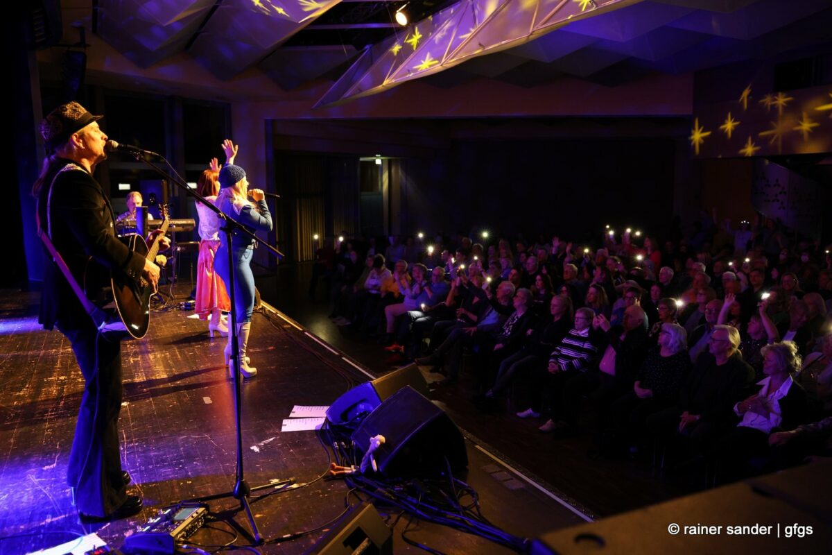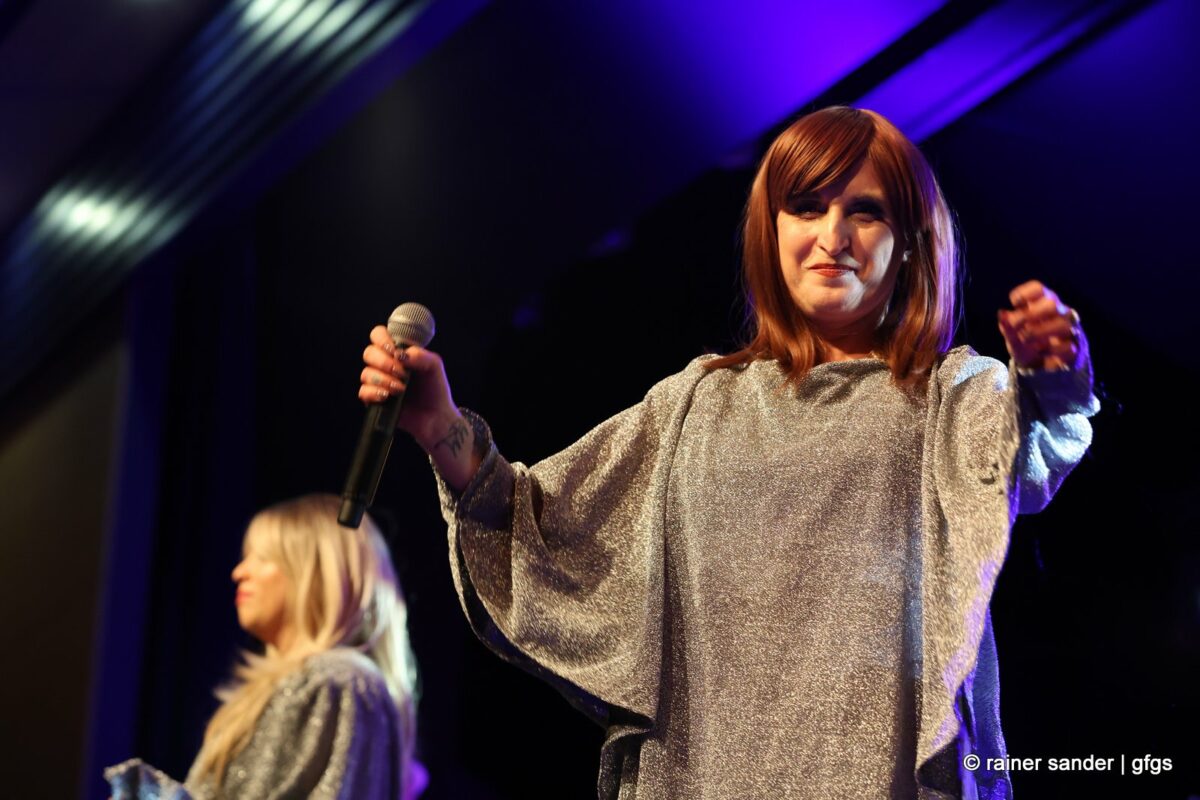 Die Sängerinnen erzählen immer wieder Geschichten und Anekdoten aus der Band-Historie der Originale. Bei Does Your Mother Know hat Björn im Übungsraum vorgesungen, wie er sich das Lied vorstellt und die anderen drei waren überzeugt, dass er es auch bei der Schallplattenaufnahme singen sollte. So war beim Livekonzert von Voulez Vous auch Björn alias Matthias Stingl am Mikrofon. Mit Dancing Queen endete das offizielle Programm. Als Zugabe gab es Thank You zu hören, ohne dass die Musikerinnen und Musiker von der Bühne gelassen wurden und schließlich forderte das Lohfeldener Publikum eine weitere Zugabe. Die stand nicht auf der Liste, aber mit Summernight City gelang auch diese. Ein schöner Konzertabend mit unvergesslicher und zeitloser Musik. (Rainer Sander)