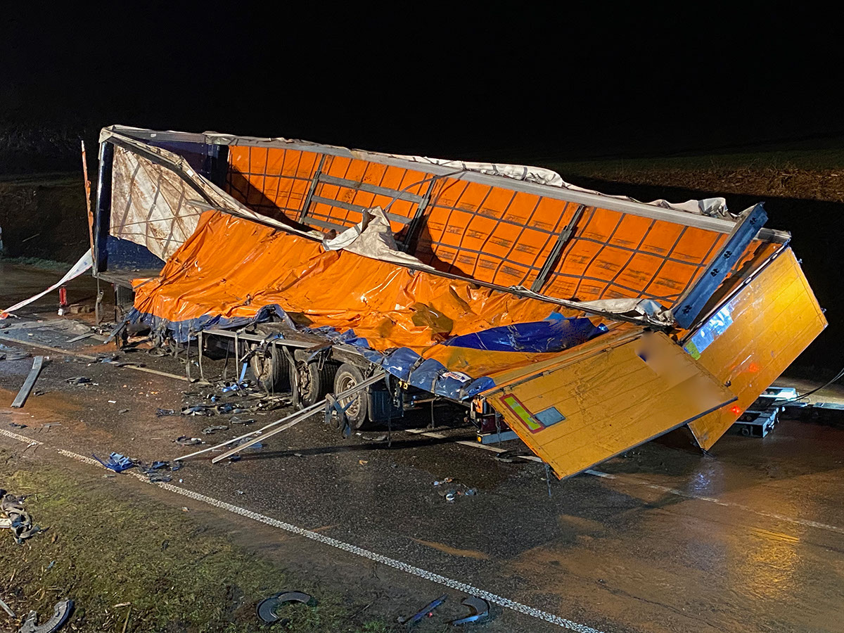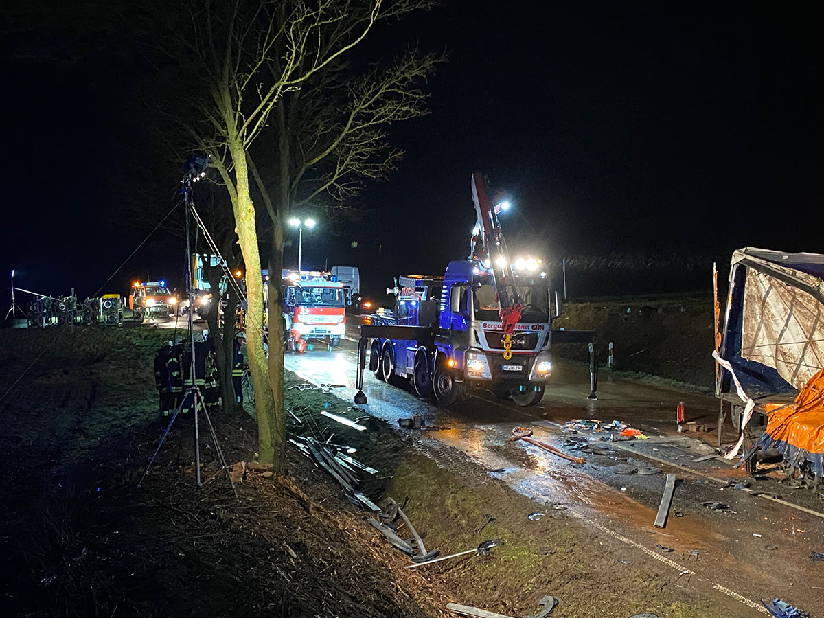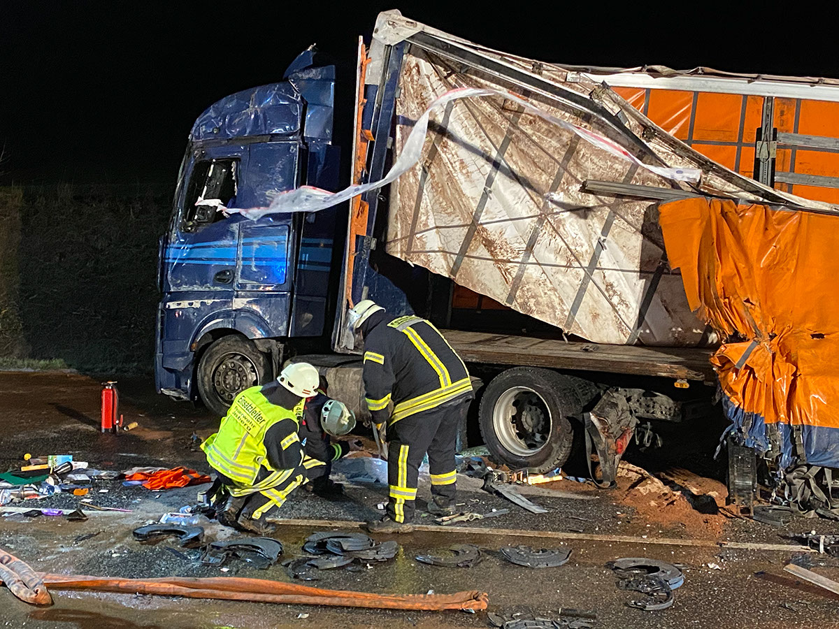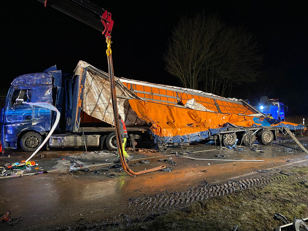 Bei Eintreffen der ersten Rettungskräfte war der 45- Jährige bereits aus seinem Fahrerhaus befreit. Die Feuerwehren sicherten die Einsatzstelle und streuten mit Bindemittel ausgelaufene Betriebsstoffe ab. Der Restdiesel im Tank musste von den Kameraden ab- bzw. umgepumpt werden.