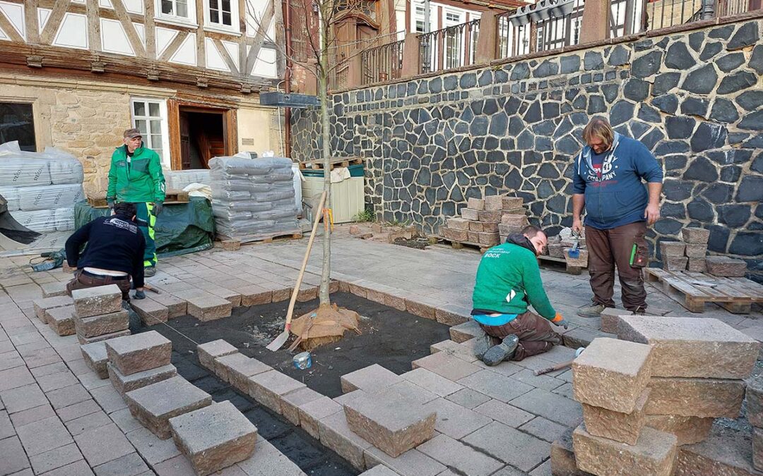 Die Neugestaltung des Vorplatzes, einschließlich Pflanzkübeln und Baumpflanzung, wurde durch das Förderprogramm „Zukunft Innenstadt“ der WIBank finanziert. Ziel der Maßnahme ist die Begrünung der Altstadt sowie eine Verbesserung der Aufenthaltsqualität für Bürger und Touristen. Zudem soll die handwerkliche Beteiligung der Jugendlichen die Identifikation mit dem öffentlichen Raum stärken. Als weitere Begrünungsmaßnahme ergänzen Cortenstahl-Pflanzkübel für Kletterrosen an der Natursteinmauer sowie saisonale Bepflanzungen am Löwenhaus den neuen Stadtbereich.