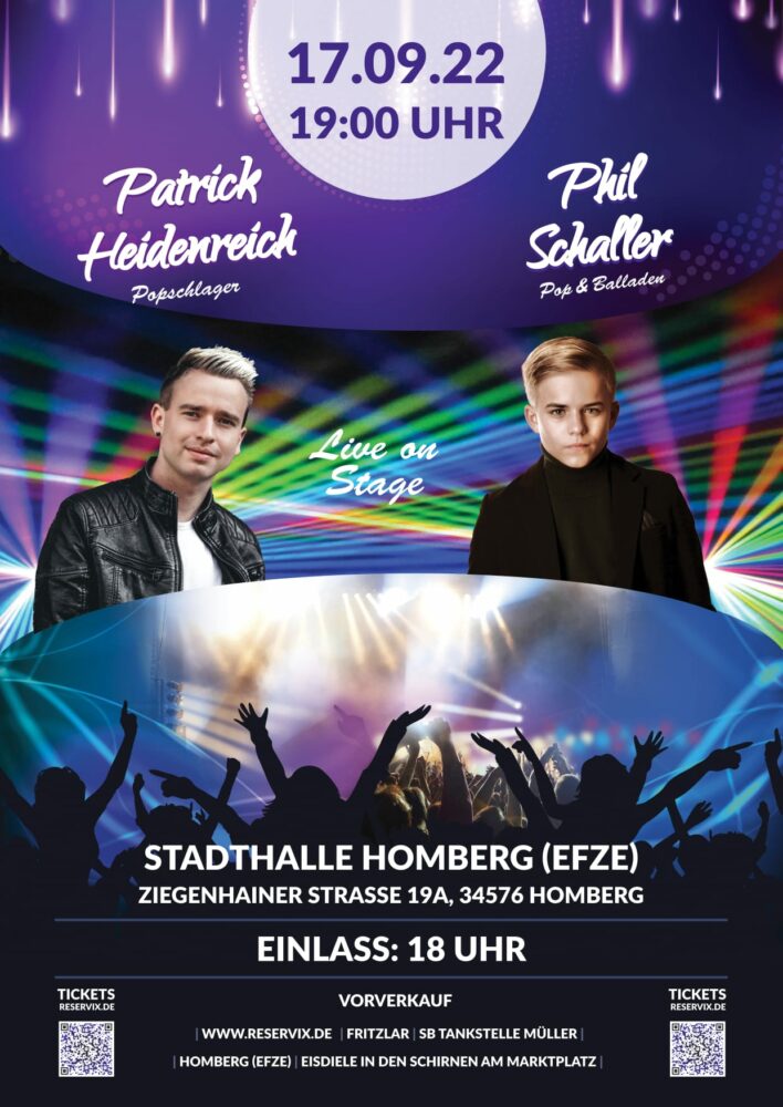 Wer Patrick live erleben will, hat dazu am 17. September in der Stadthalle in Homberg die beste Möglichkeit. Dort wird er zusammen mit Phil Schaller ein Konzert geben.