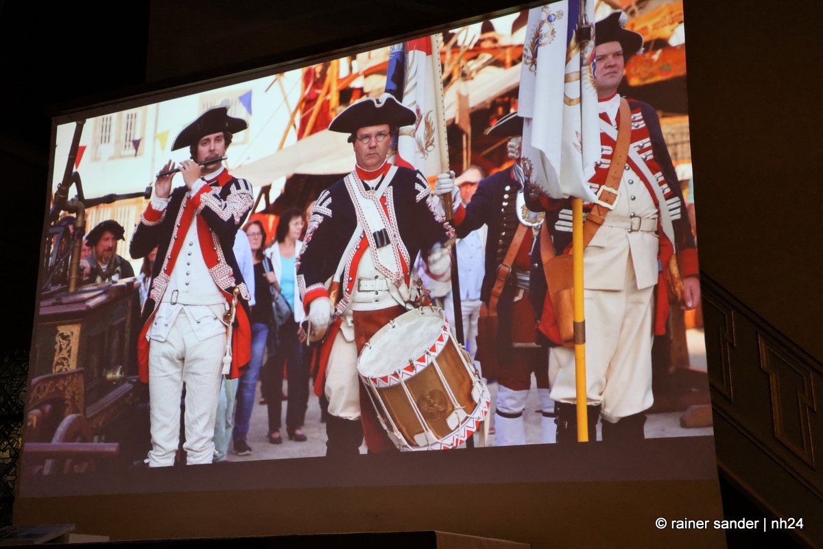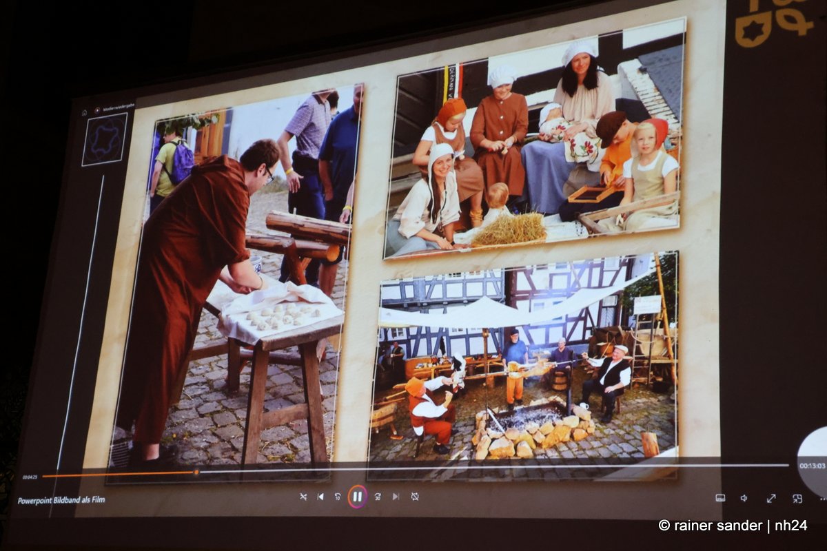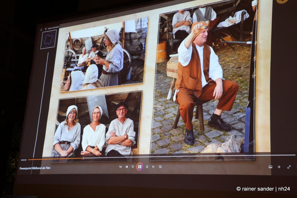 Der Vorsitzende betonte die Gemeinschaftsleistung und dass am Ende ein beeindruckendes Netzwerk entstanden ist. Ein Fest für Geschichte, Glaube und Gemeinschaft. Gerhard Reidt, der nicht nur das Buch, das jetzt erschienen ist, selbst gestaltet und zuvor stets den Überblick über Ablauf und Organisation bewahrt hat, erzählte aus der Entstehungsgeschichte. Eineinhalb Jahre Vorlauf hatte die Mega-Veranstaltung und für Markus Stübing noch ein Vierteljahr mehr. So lange hatte er den Wunsch in sich getragen, das Fest von 2014 nicht nur zu reproduzieren, sondern zu toppen. Er war auf Mittelalterfesten und Märkten herumgereist und hatte das Design der Veranstaltung schon im Kopf, als er damit herausrückte. Das Ergebnis kann sich jetzt auch dauerhaft sehen lassen … (Rainer Sander)