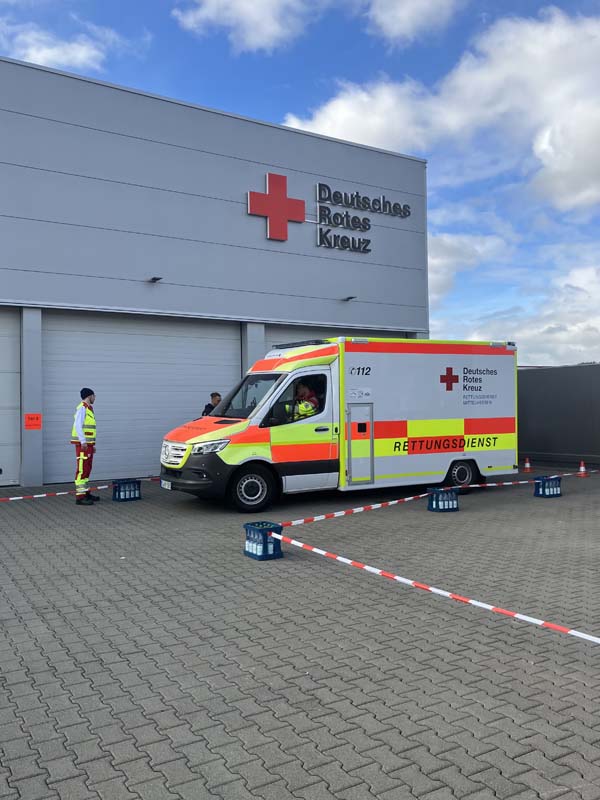 Zu den Ehrengästen der Veranstaltung gehörten Dr. Henrik Vollbracht, Referent Rettungsdienst im Hessischen Ministerium für Familie, Senioren, Sport, Gesundheit und Pflege, sowie Jens Dapper, stellvertretender Geschäftsführer des DRK-Landesverbandes Hessen. Beide wünschten den Teilnehmenden viel Erfolg und machten sich selbst ein Bild vom Wettbewerb.