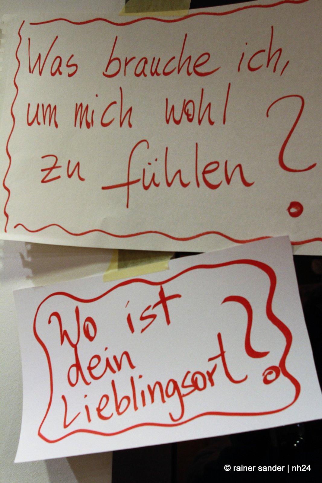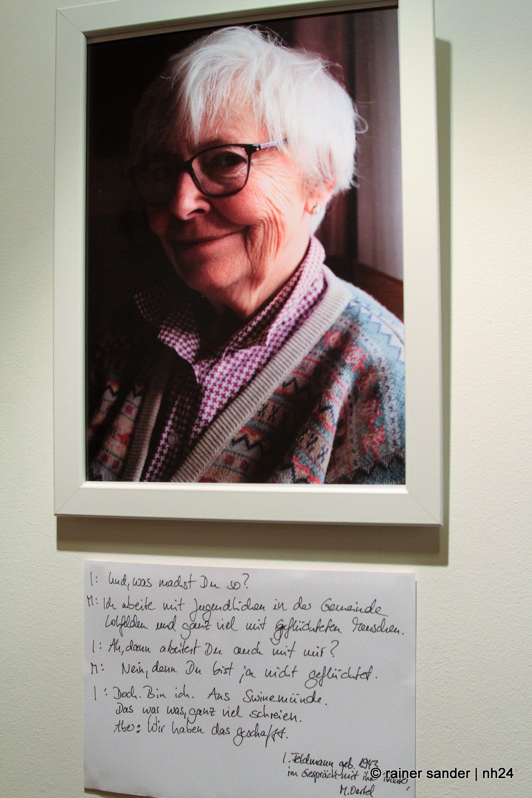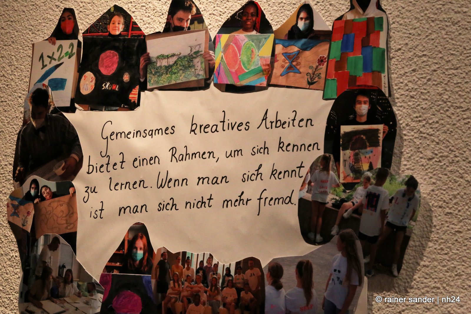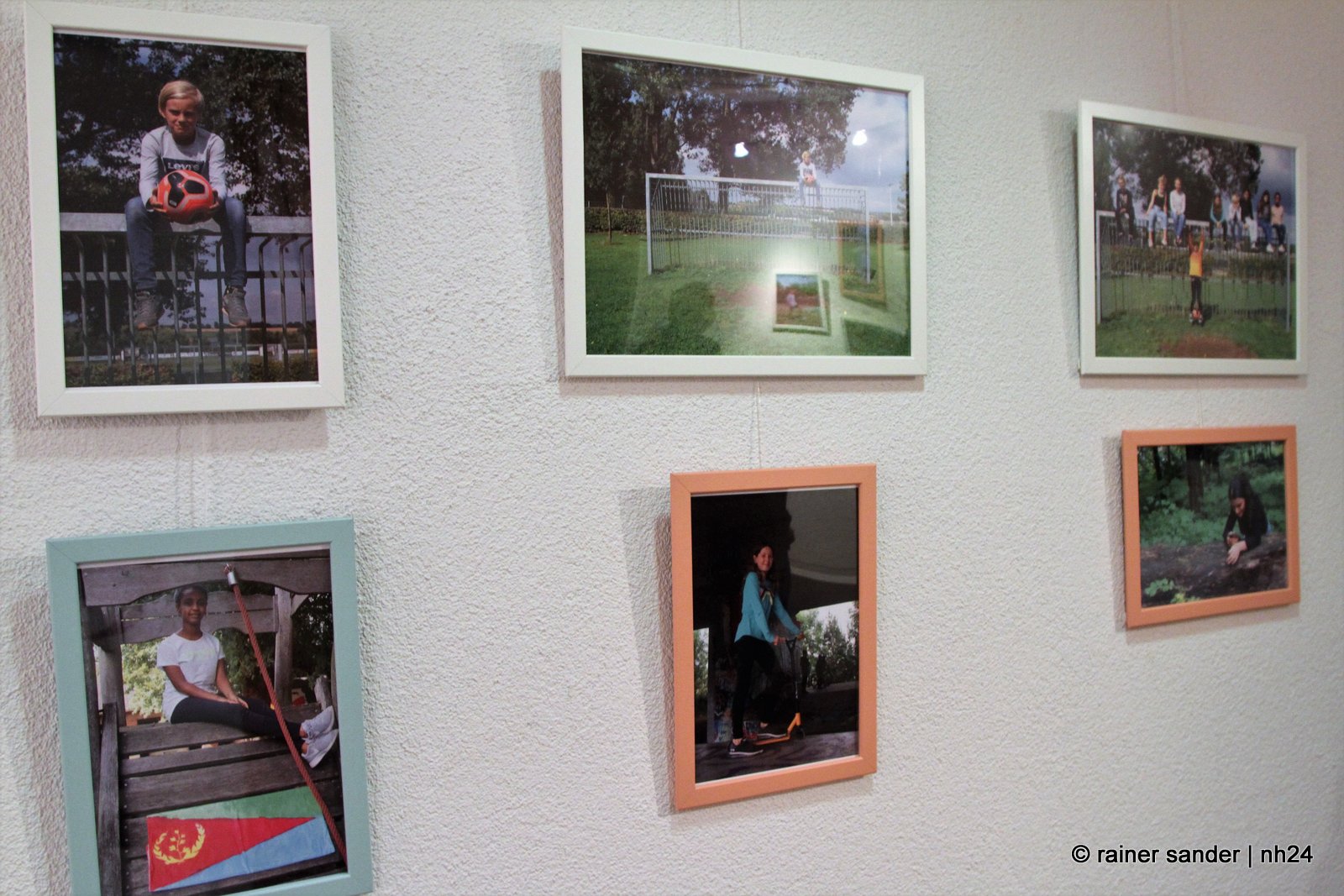 Die Ausstellung ist aufgeteilt in das Kreative der Workshops mit Farben und Medien. Jugendliche sagen im Video „ich wünsche Dir …“ Zoe, Sarah und andere wurden interviewt. Auch Susann (37) die vor rund 50 Besuchern der Vernissage stolz berichtet, dass sie, angekommen im Jahr 2016, inzwischen kurz vor dem Abschluss einer Ausbildung als Erzieherin steht.