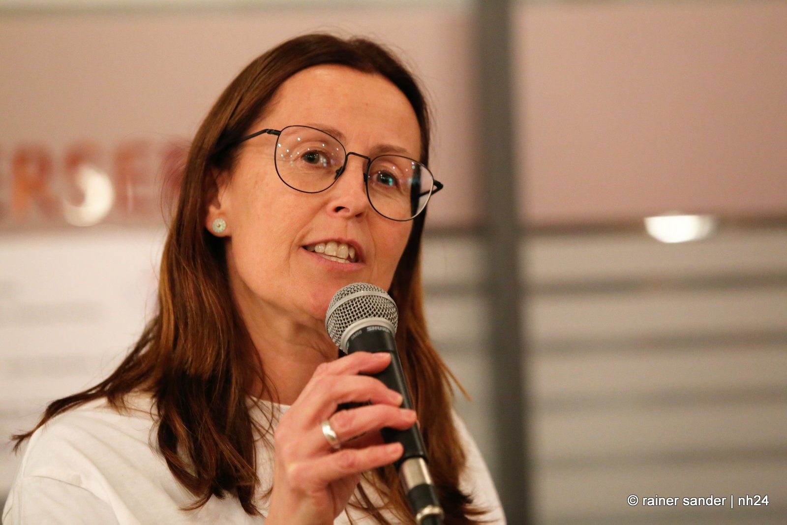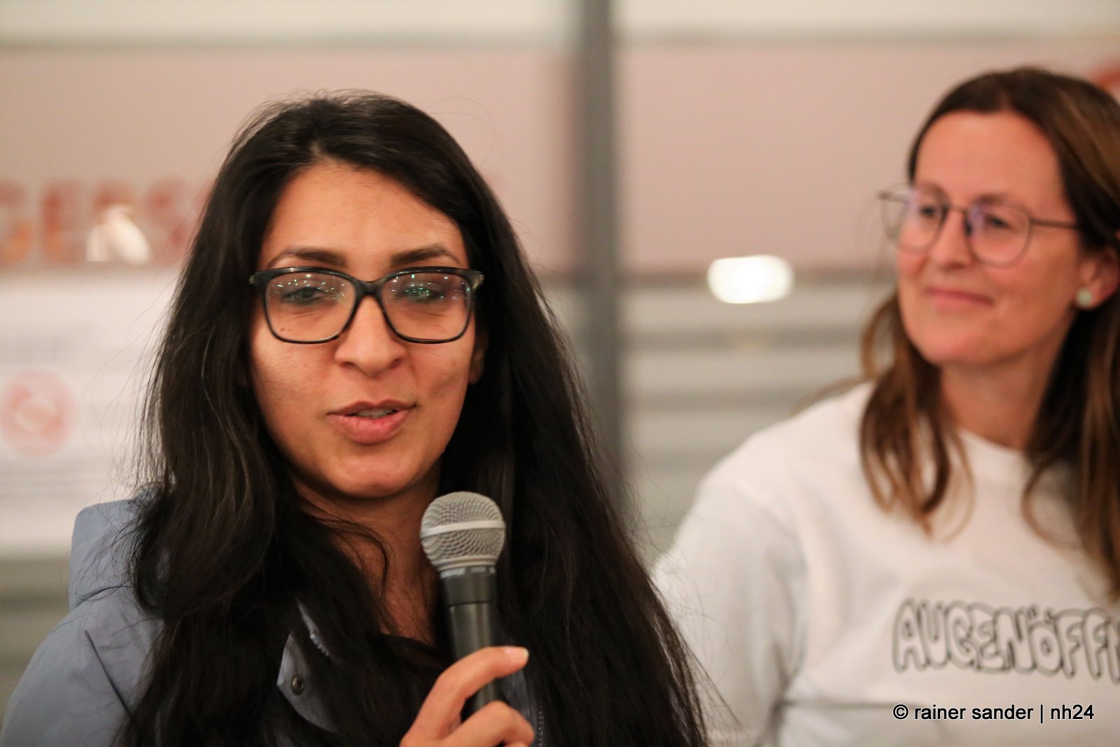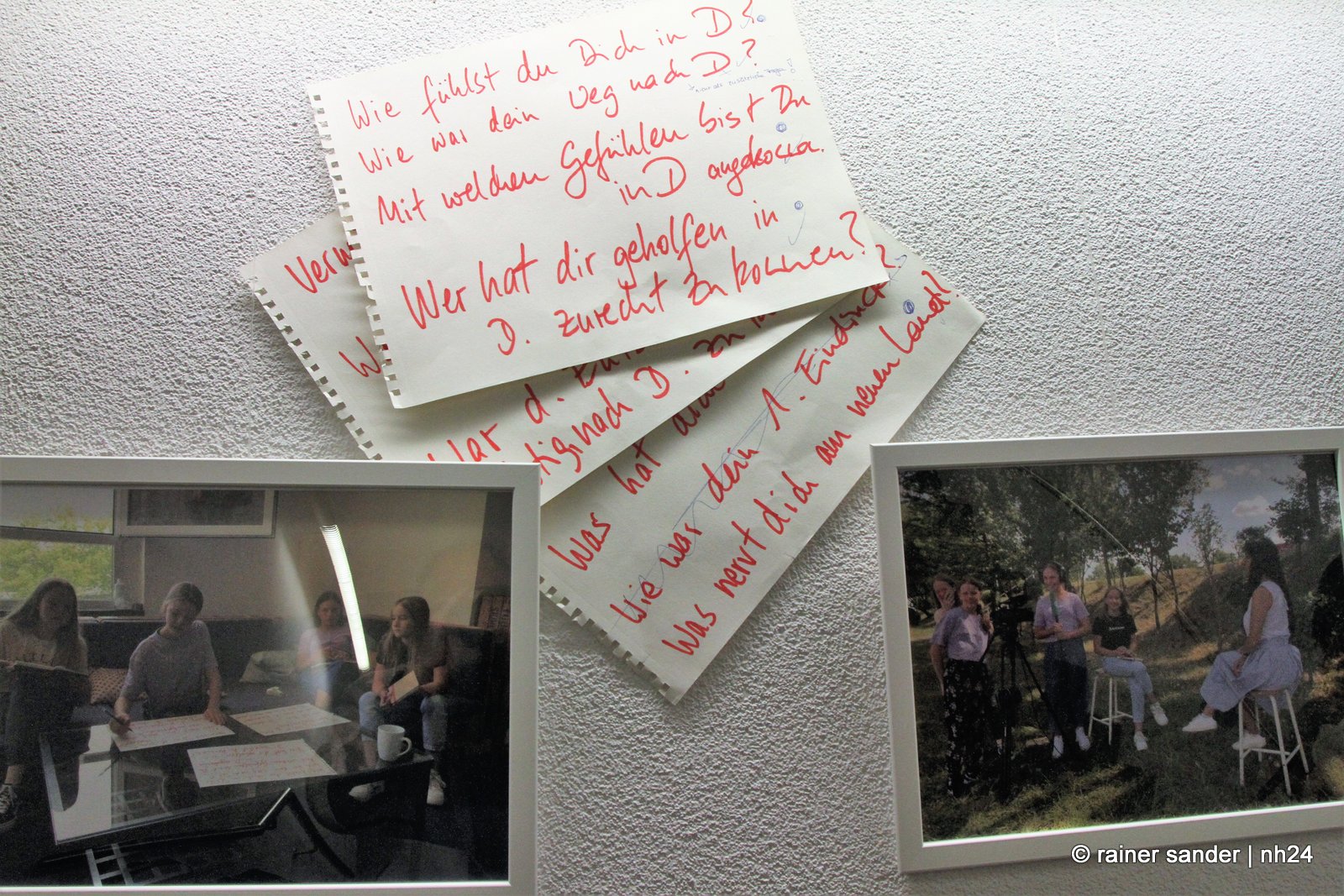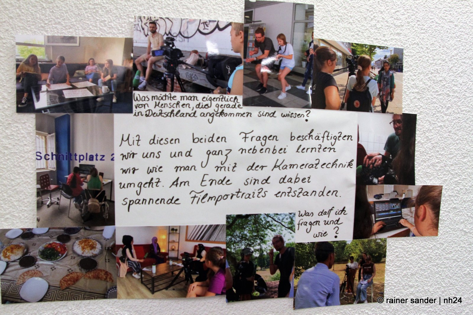 Mike Huntemann war als Medienpädagoge in dem Projekt und einer von ganz vielen Fachleuten und Profis. „Viele“, so Frau Oertel, sind irgendwann angekommen, auch der Italiener um die Ecke mit der guten Pizza. Sie erinnert sich, dass die Stimmung „wir schaffen das“ plötzlich weg war, als ein Krieg in Europa ausgebrochen ist. Die zentrale Frage in den Interviews war, „fühlen sie sich wohl in Deutschland und warum?“ Menschen, die angekommen sind, reden darüber, Neuankömmlinge nicht, hat sie festgestellt.