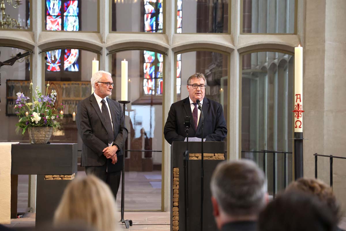 In ihrer Ansprache würdigte Bischöfin Dr. Beate Hofmann Lübckes entschlossenes Eintreten für Demokratie, Vertrauen und gesellschaftlichen Zusammenhalt. Sie rief dazu auf, sich aktiv für die Grundwerte des Grundgesetzes starkzumachen. „Die Demokratie braucht eine Streitkultur in gegenseitiger Achtung, angstfreiem Dialog und einem gemeinsamen Ringen um die besten Lösungen“, sagte Hofmann. Kompromisse seien kein Zeichen von Schwäche, sondern Ausdruck von Vernunft. Auch die Kirche leiste ihren Beitrag zur Demokratie – durch ihre Strukturen, ihre Bildungsarbeit und ihre Grundüberzeugungen wie Nächstenliebe, Respekt und Gewaltfreiheit.