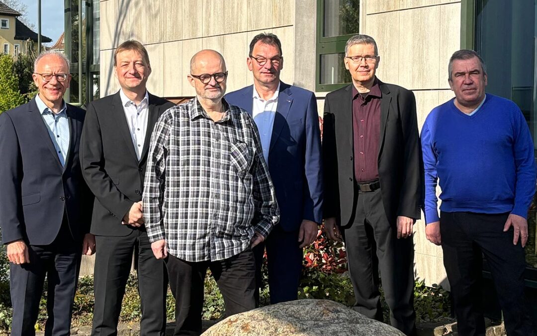 Helmut Euler (Vorstandsvorsitzender), Christian Bernhardi (Bereichsleiter Finanzen), Arno Wiegand, Ralph Kehl (Vorstandsmitglied), Heiko Remmers (Betriebsratsmitglied), Harald Becker (Betriebsratsvorsitzender) (pm/wal)