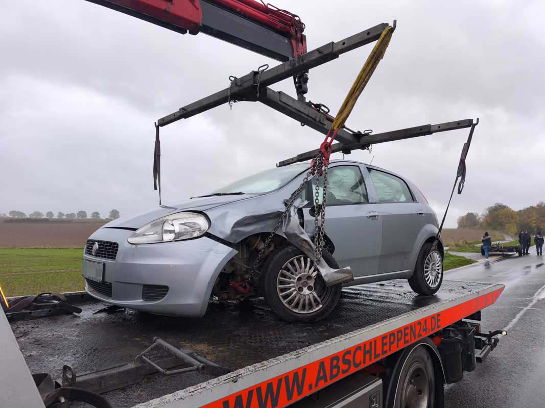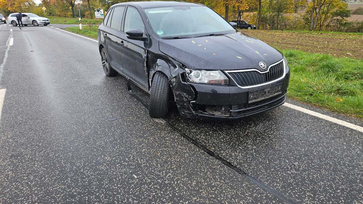 Bei dem Unfall übersah ein Autofahrer den vor ihm fahrenden Pkw, der dabei war, in einen Feldweg abzubiegen. Beide Fahrzeuge kamen aus Richtung Jesberg, kollidierten seitlich und kamen auf der Fahrbahn kurz hinter dem Feldweg zum Stillstand.
