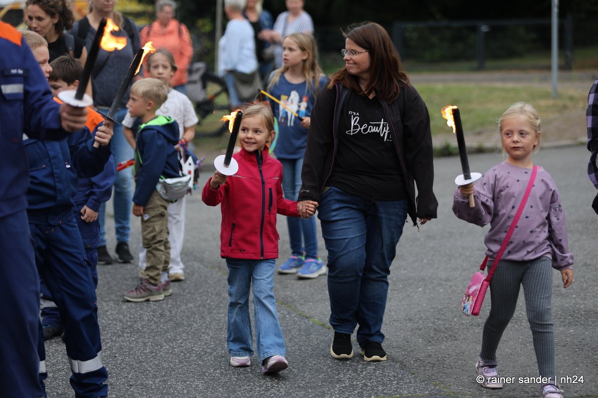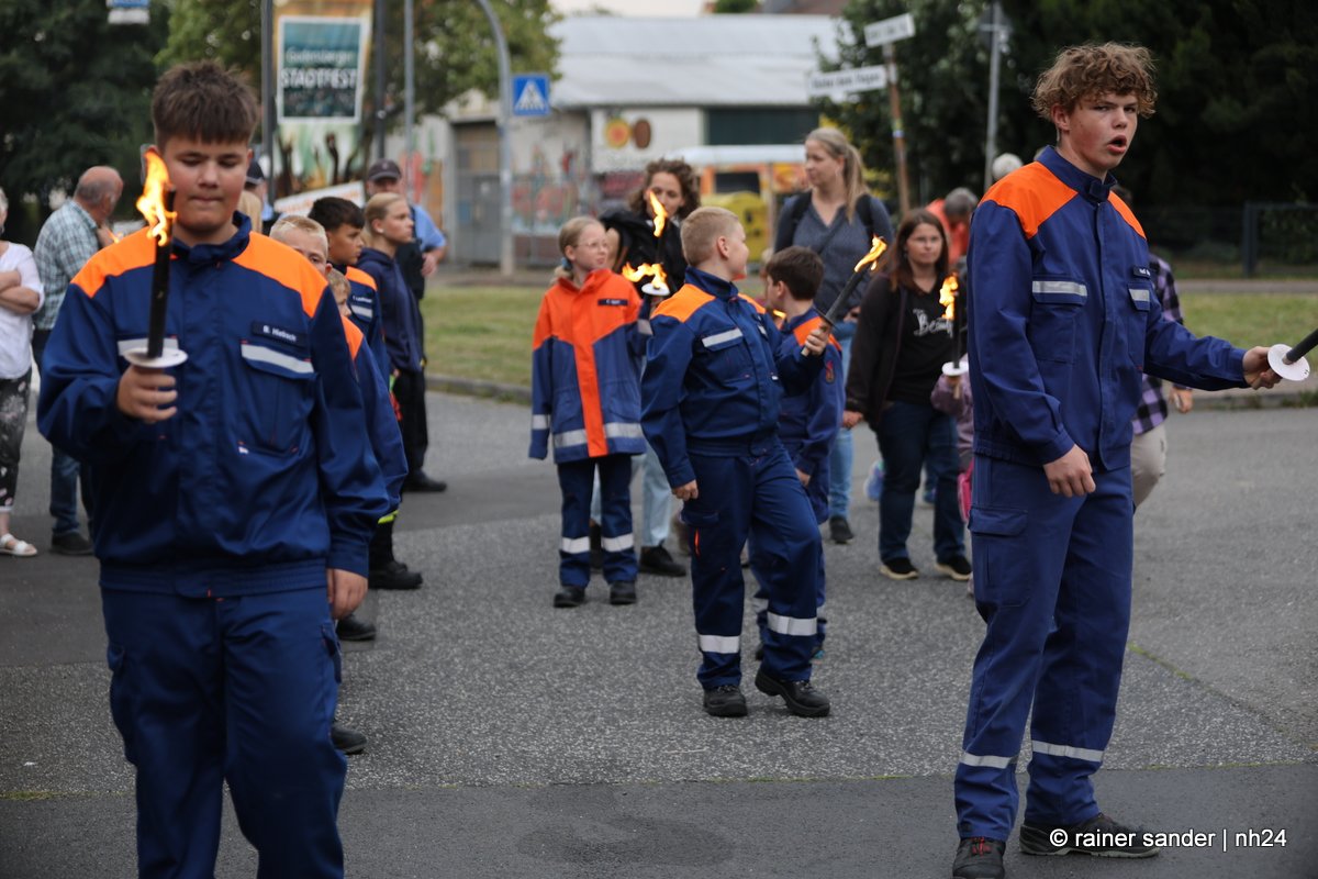 Am gestrigen Freitagabend marschierten Feuerwehr und Fanfarenzug mit Fackeln und Lampions vom Hospital zur Untergasse in den Stadtfestbereich. Allen voran Bürgermeisterin Sina Massow. Vielleicht haben davon nicht alle Kinder in Gudensberg etwas gewusst, sonst wären es sicher ein paar mehr gewesen.