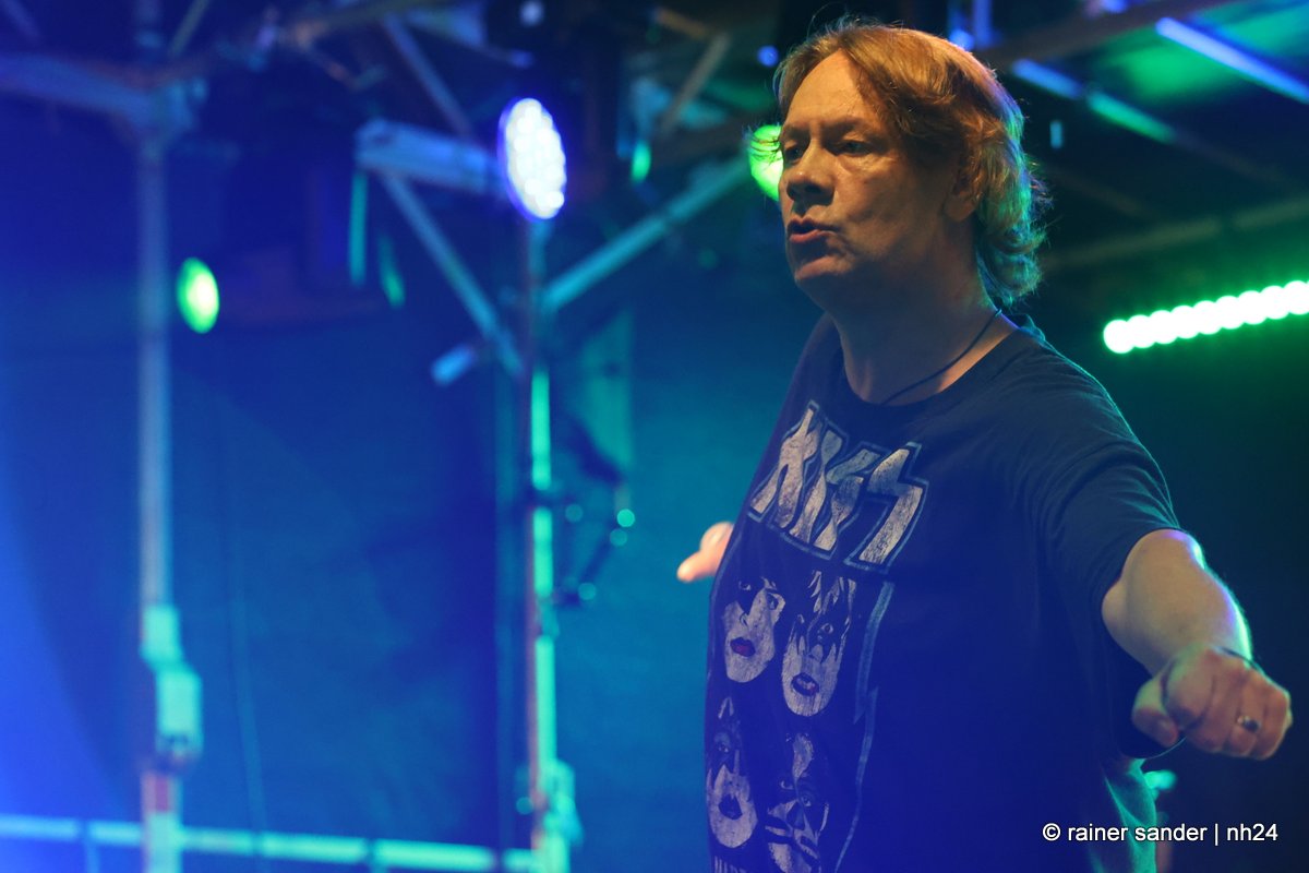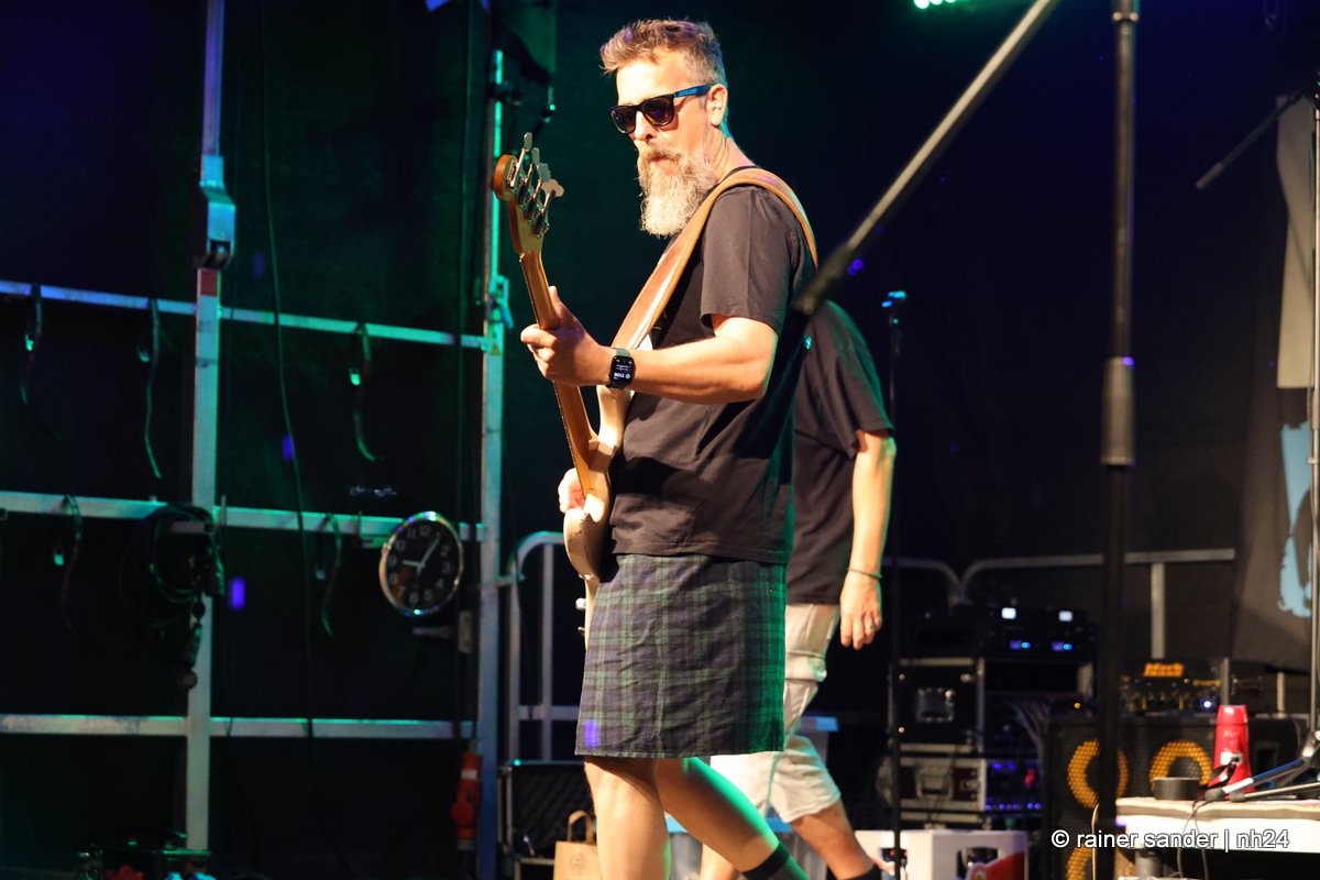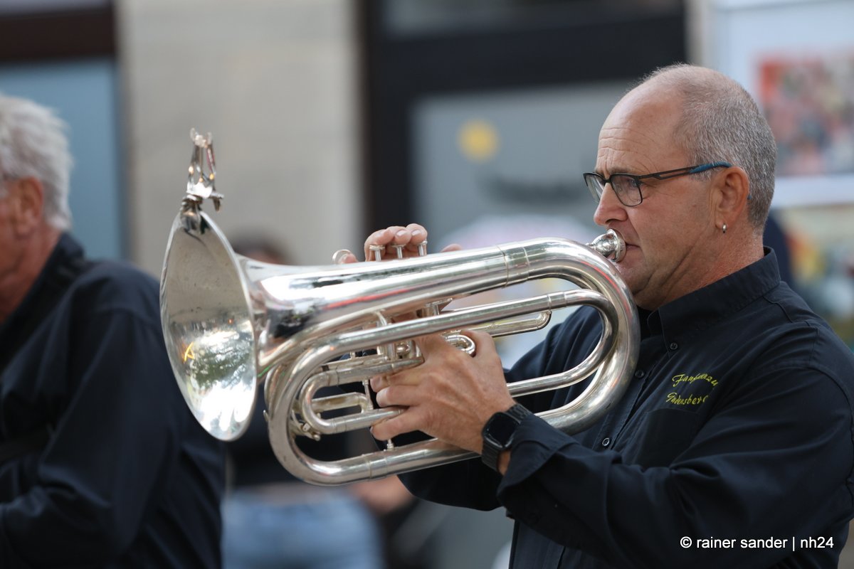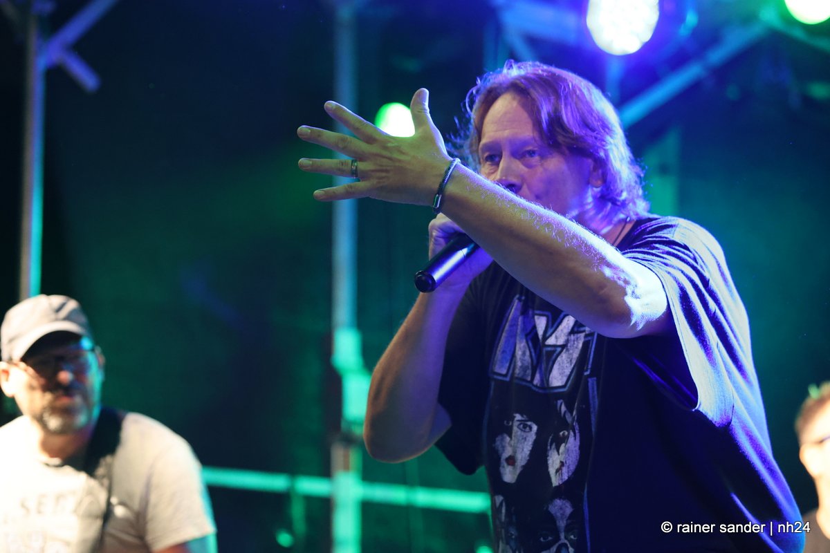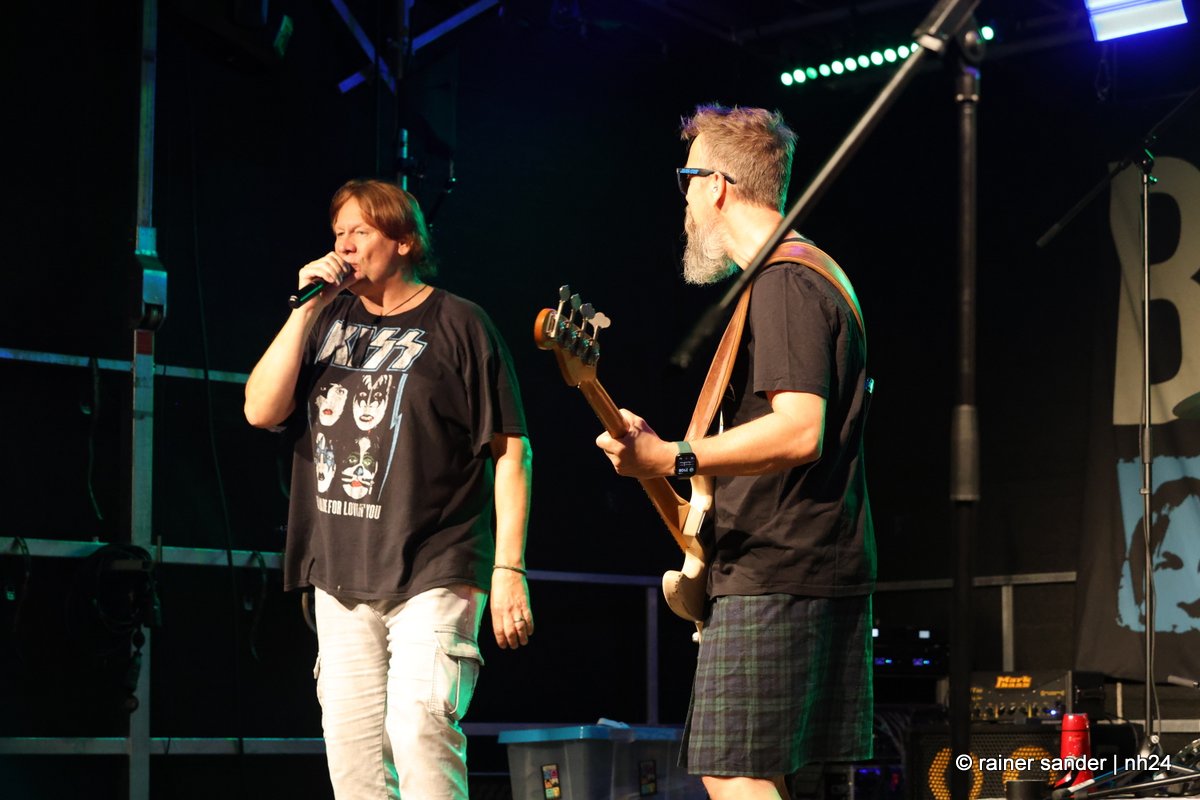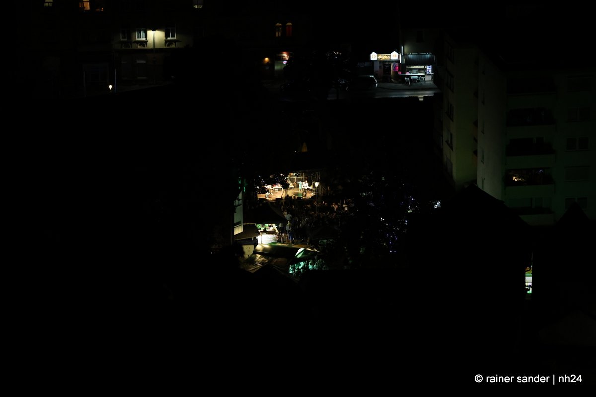 Die große Bühne steht diesmal „andersherum“. Damit ist der „Festplatz“ zur Fußgängerzone hin geöffnet, allerdings mit dem Nachteil verbunden, dass man die Akteure von den Sitzbänken jetzt gar nicht mehr sieht, weil das große FOS-Zelt mit dem Mischpult die Sicht verdeckt.