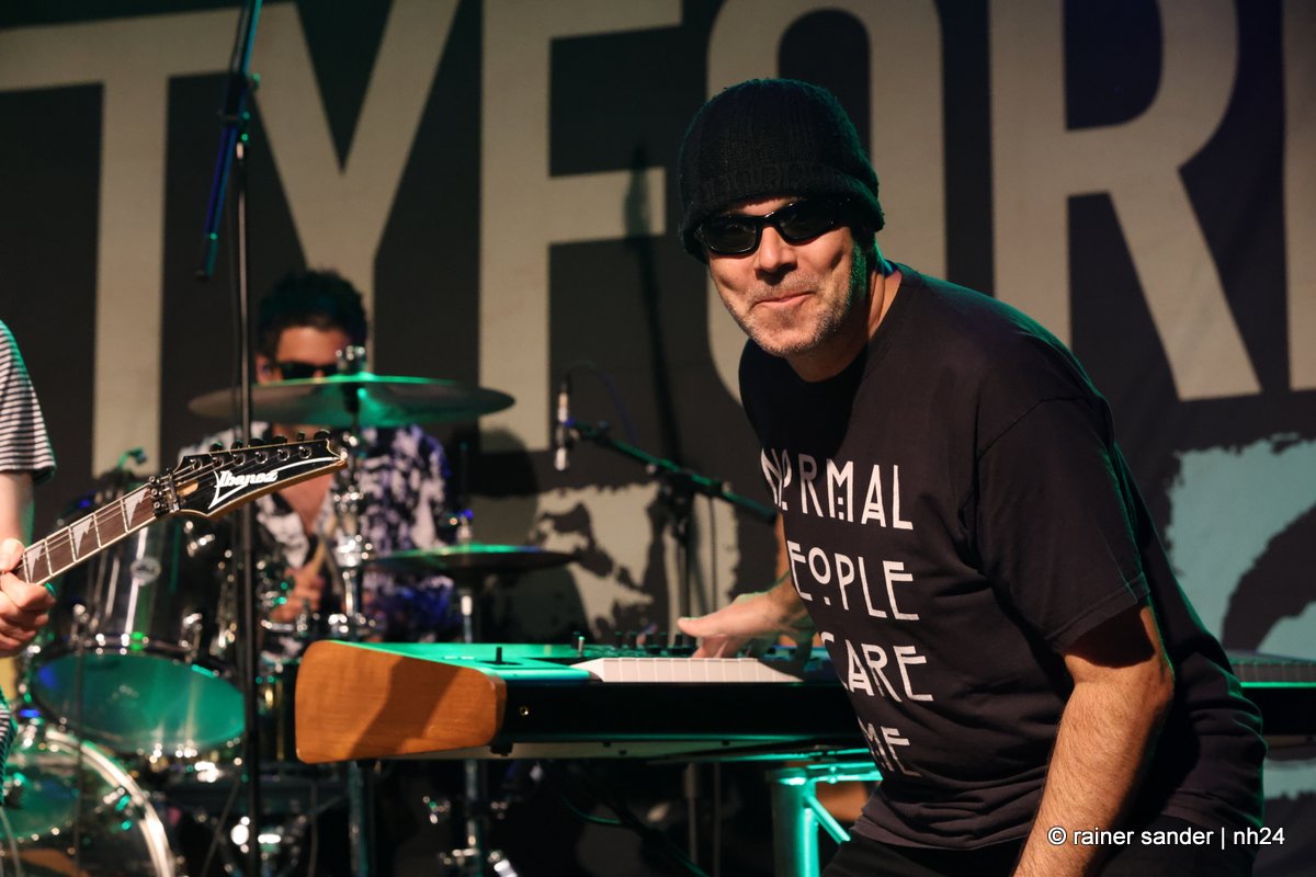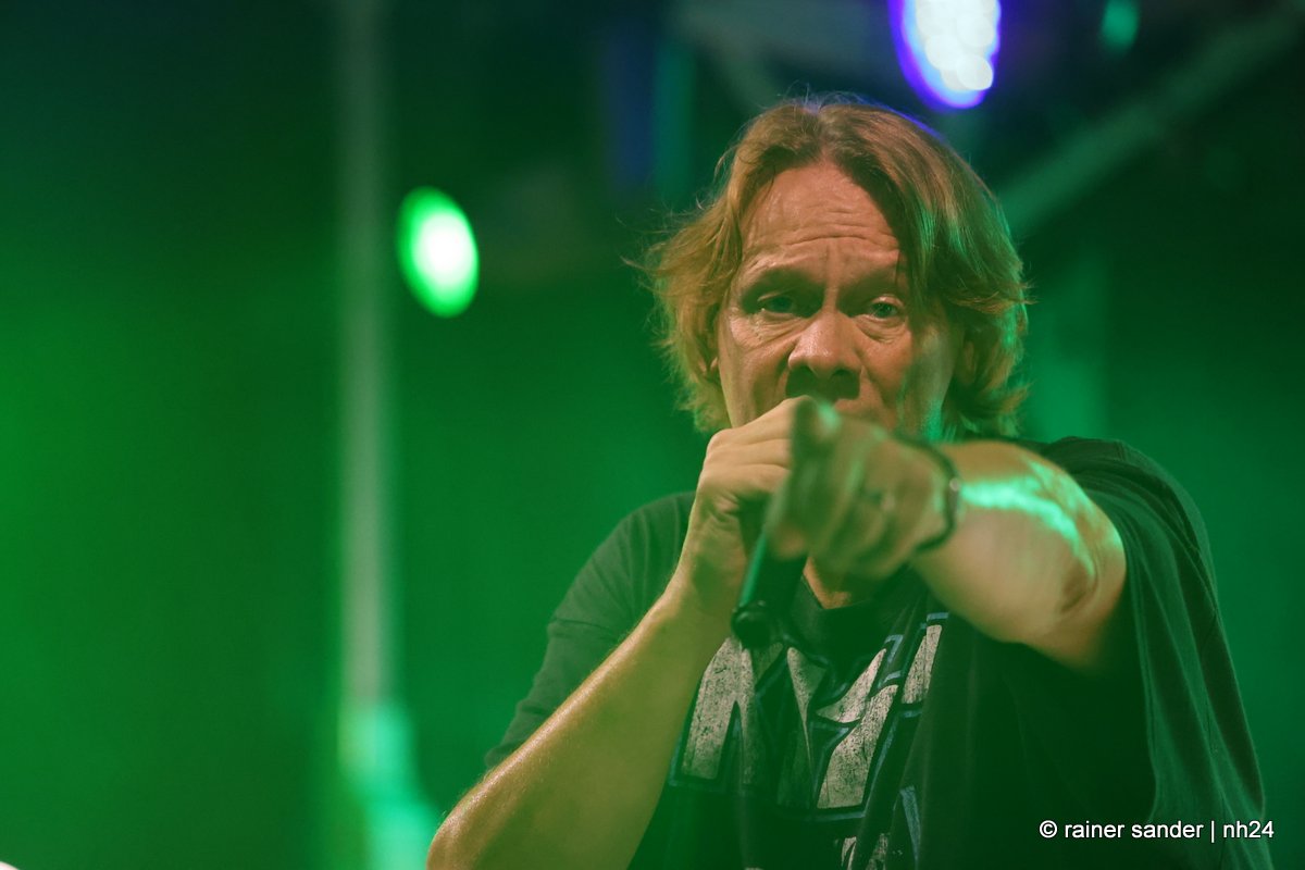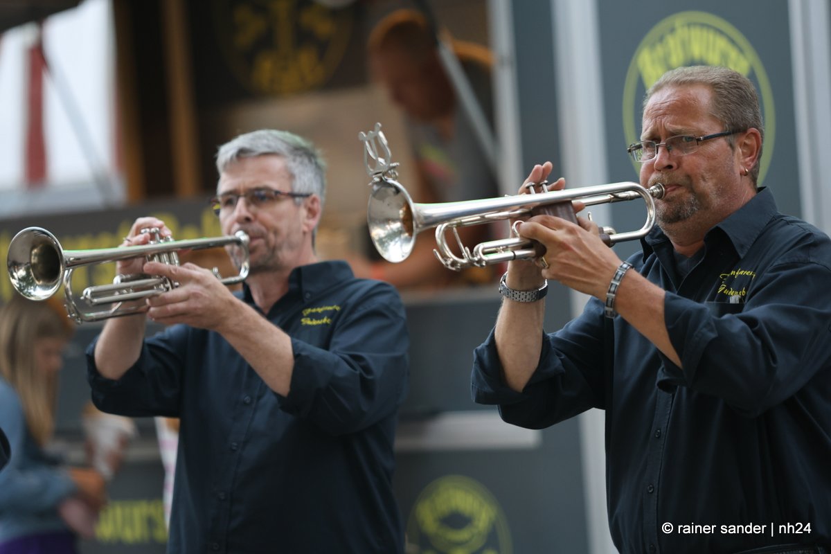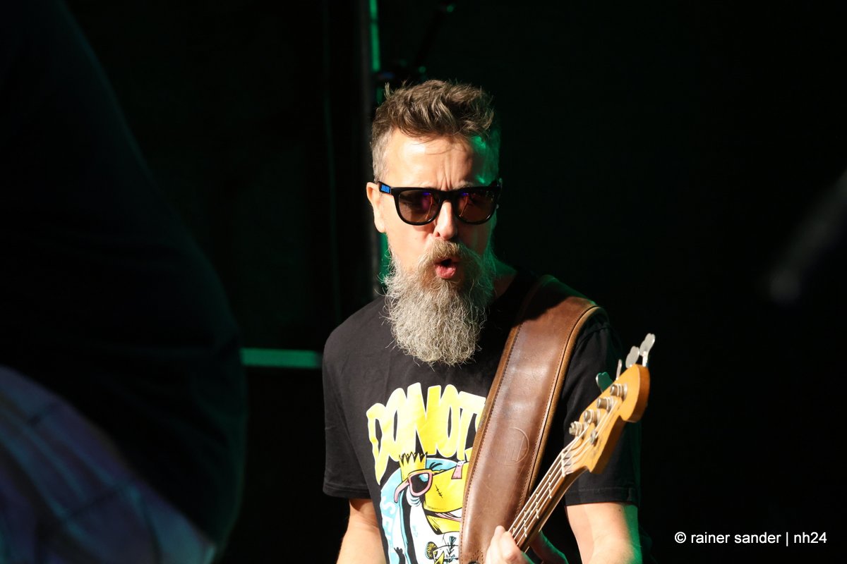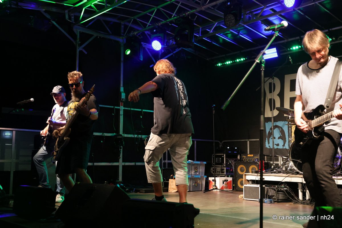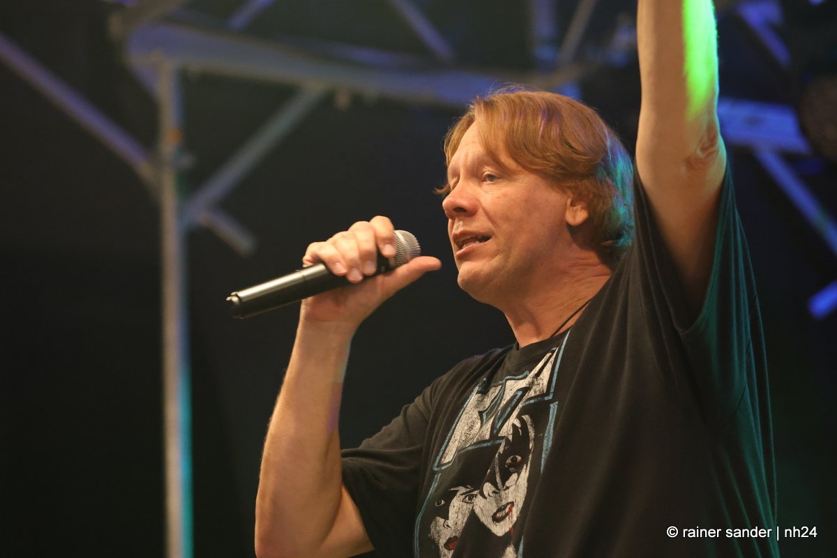 Die große Bühne steht diesmal „andersherum“. Damit ist der „Festplatz“ zur Fußgängerzone hin geöffnet, allerdings mit dem Nachteil verbunden, dass man die Akteure von den Sitzbänken jetzt gar nicht mehr sieht, weil das große FOS-Zelt mit dem Mischpult die Sicht verdeckt.