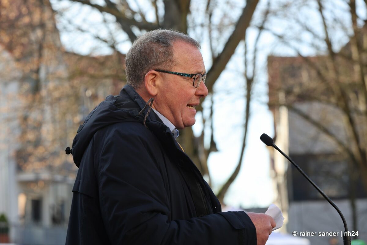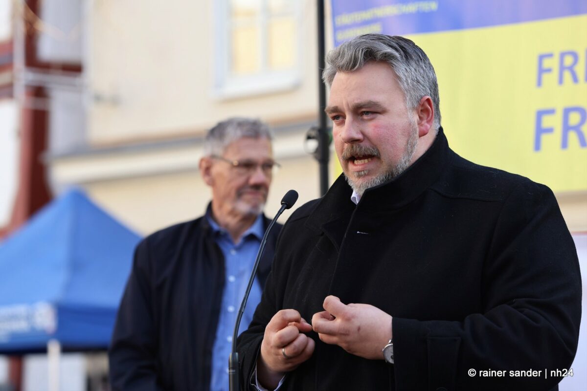 Jochem Hamacher von „Mach Mit“ berichtet von Initiativen mitten in zwei Jahren Krieg, Töten, Sterben und unfassbarem Leid. Das Thema macht Angst. Der Vorsitzende der Stadtverordnetenversammlung, Jochen Noll, verknüpfte die Krise mit der aktuellen Diskussion hierzulande. Vielfalt macht jede Stadt lebendig. Es gelte, demokratiefeindlichen Handlungen entschieden entgegentreten. MdL Dominik Leyh sah Deutschland einst umzingelt von den Freunden der Demokratie. „Wir haben uns alle die Augen gerieben.“ Jetzt müsse man der Ukraine an die Hand geben, was sie braucht.