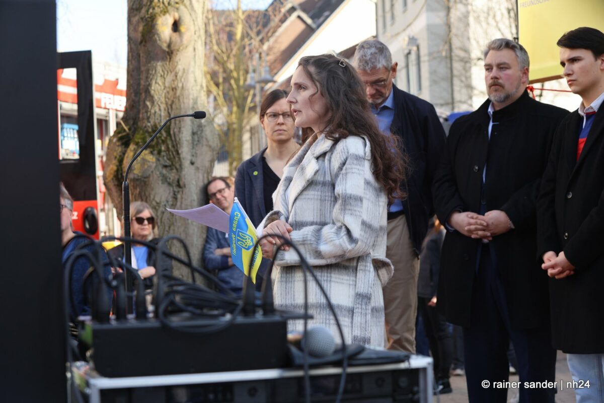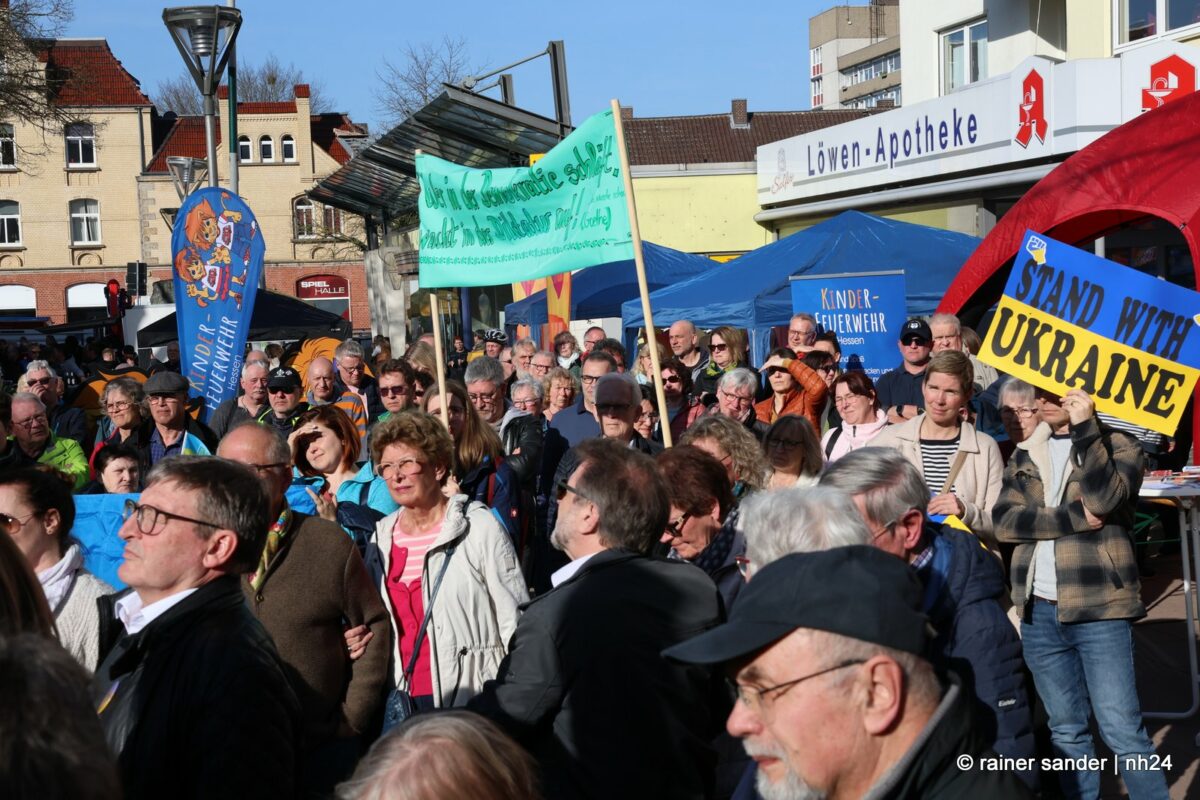 Am tiefsten berührten allerdings die Worte von Oksana Kvasnytzia aus Schtschyrez. Sie ist zurzeit als Lehrerin hier tätig für ihre Landsleute, die aus den umkämpften Gebieten nach Nordhessen geflohen sind. Ihre Schilderungen der Veränderungen im Leben und Alltag in der Heimat berühren und ihre Worte auch. Sie kommt aus einem Land, das sich dagegen wehrt, dass Putin sein Ziel erreichen kann, die Ukraine und ihre Identität auslöschen. Ohne Sprache, sagt sie, sind wir stumm, ohne Glauben haben wir keine Zukunft. Den helfenden Chattengauern, von denen gestern 150 in der Fußgängerzone versammelt waren, wünschte sie Glück, Liebe und Frieden in Ihren Familien zu Ostern.