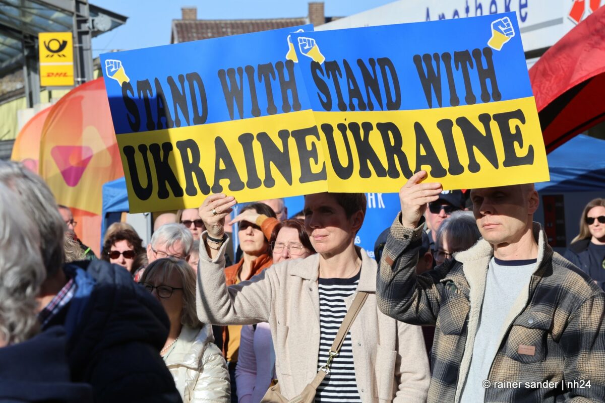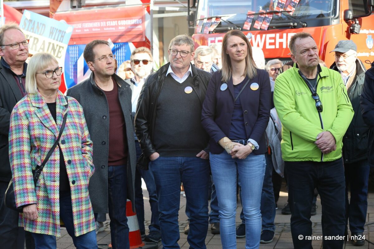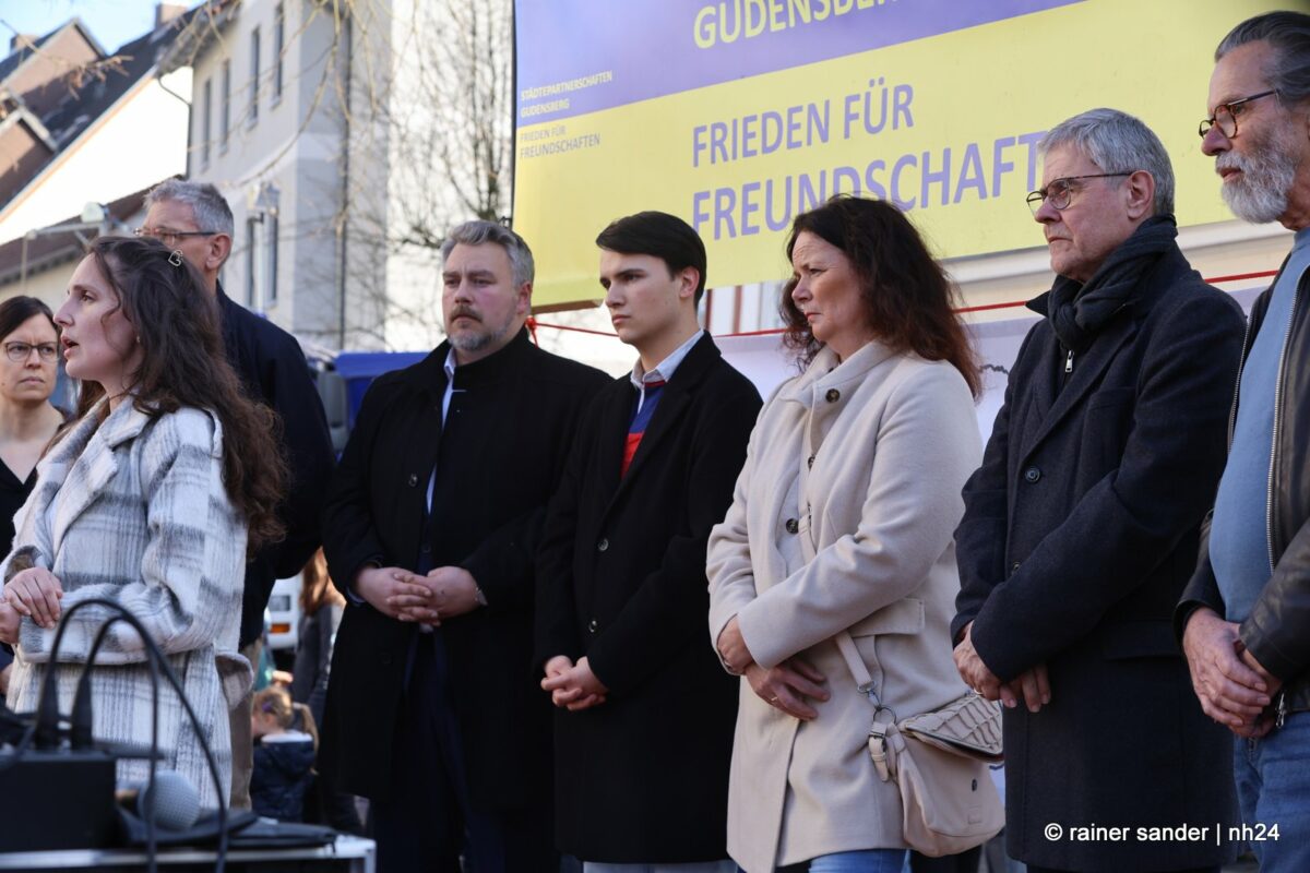 CHATTENGAU. Die drei Chattengaugemeinden Edermünde, Gudensberg und Niedenstein hatten – gemeinsam mit dem Gudensberger Partnerschaftsverein – den Gudensberger Ostermarkt am Sonntag genutzt, um mit einer Kundgebung an den Jahrestag des russischen Überfalls auf die Ukraine zu erinnern.