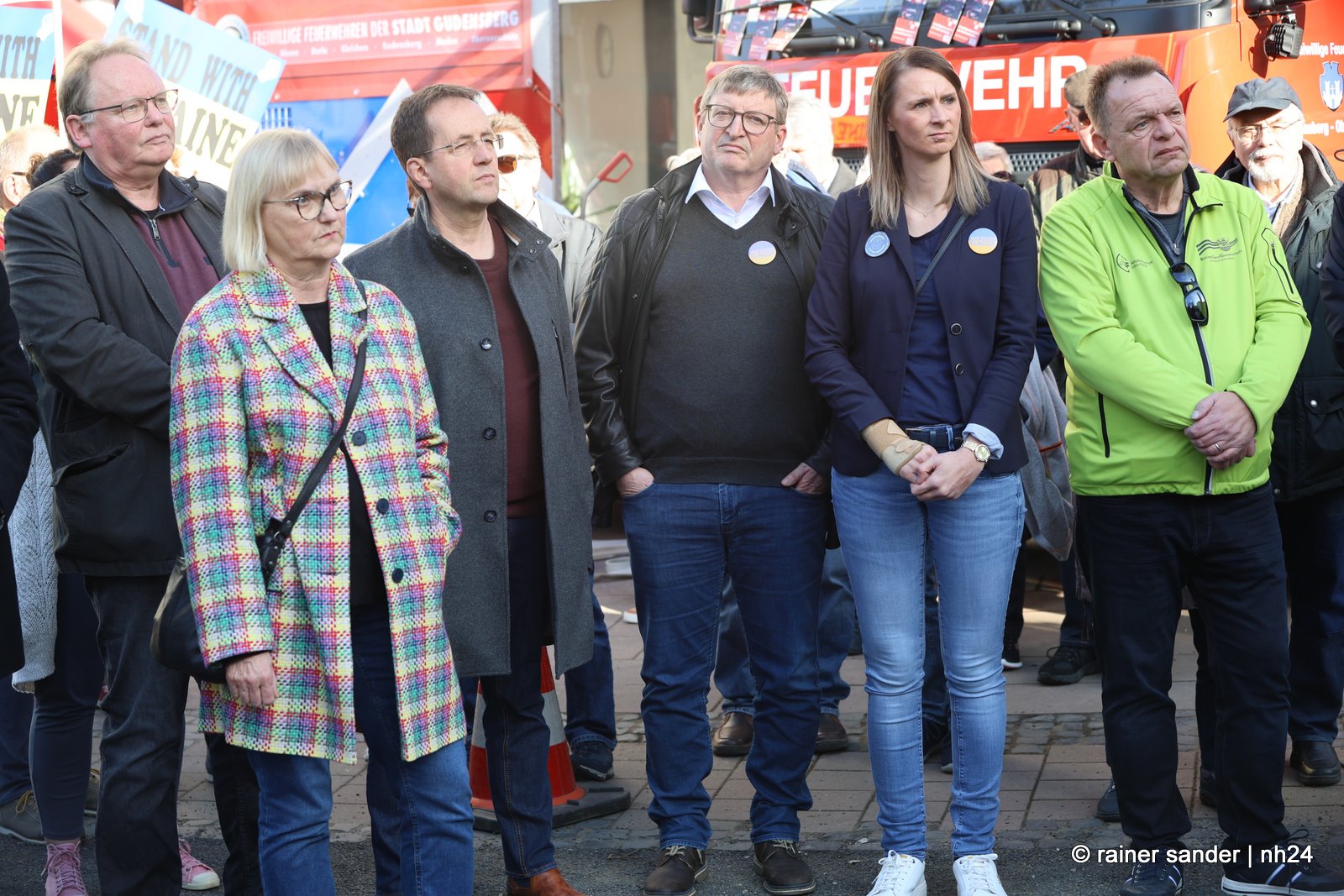 Gleichzeitig wollten sie ein Zeichen für Demokratie und gegen Hass oder Ausgrenzung setzen. Gastgeberin Sina Massow musste in den ersten Amtstagen ihrer Zeit als Bürgermeisterin der bundesweit einzigen deutschen Stadt mit einer intensiv aktiv gelebten Städtepartnerschaft in die Ukraine Verbundenheit demonstrieren, Solidarität bekunden und Hilfslieferungen mitorganisieren. Fast täglich war sie involviert, um Stromgeneratoren, Krankenhausausrüstung, Gegenstände des täglichen Bedarfs oder Fahrzeuge – auch von den Umlandgemeinden – aus Bauhöfen oder von den Feuerwehren Richtung Kriegsgebiet auf den Weg zu bringen.
