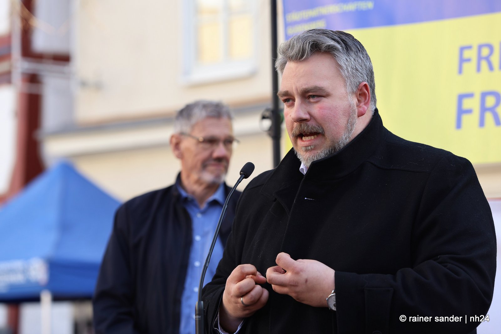 Derjenige, der am intensivsten an der Hilfsfront „kämpft“ ist Wolfgang Mand vom Partnerschaftsverein. Er ist eigentlich angetreten, um die Partnerstadt Schtschyrez kulturell und infrastrukturell zu unterstützen und nicht in den Folgen eines Krieges. Er zeigte sich gerührt von der jahrelangen Unterstützung und der Demonstration: „Die Ukraine wird in unserer Mitte kommen!“ (rs)