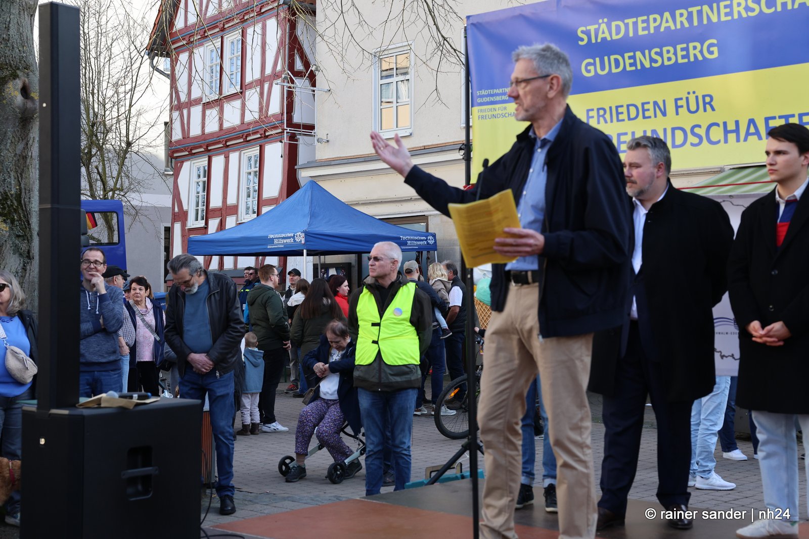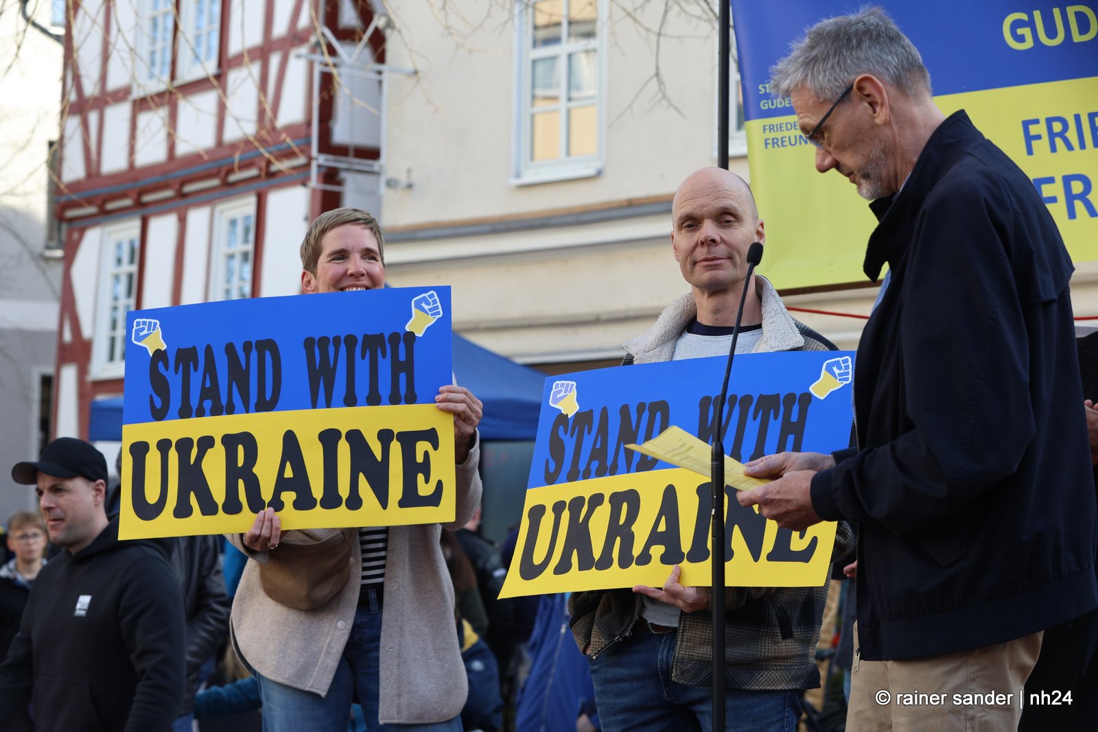 CHATTENGAU. Die drei Chattengaugemeinden Edermünde, Gudensberg und Niedenstein hatten – gemeinsam mit dem Gudensberger Partnerschaftsverein – den Gudensberger Ostermarkt am Sonntag genutzt, um mit einer Kundgebung an den Jahrestag des russischen Überfalls auf die Ukraine zu erinnern.