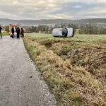 Die 53-jährige Autofahrerin aus Freiburg war aufgrund der glatten Fahrbahn mit ihrem Fahrzeug ausgangs einer Linkskurve nach rechts von der Fahrbahn abgekommen und hatte einen Straßengraben durchfahren. Im Verlauf drehte und überschlug sich das Fahrzeug und kam auf der Beifahrerseite liegend auf einem Acker zum Stillstand.