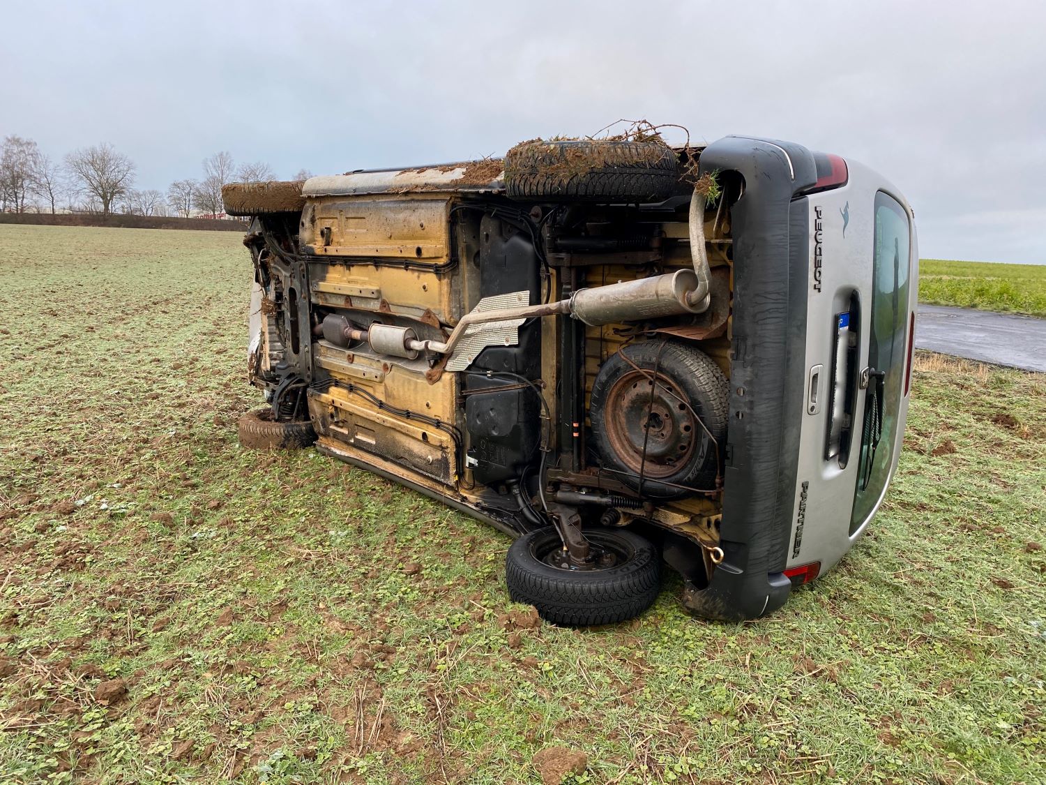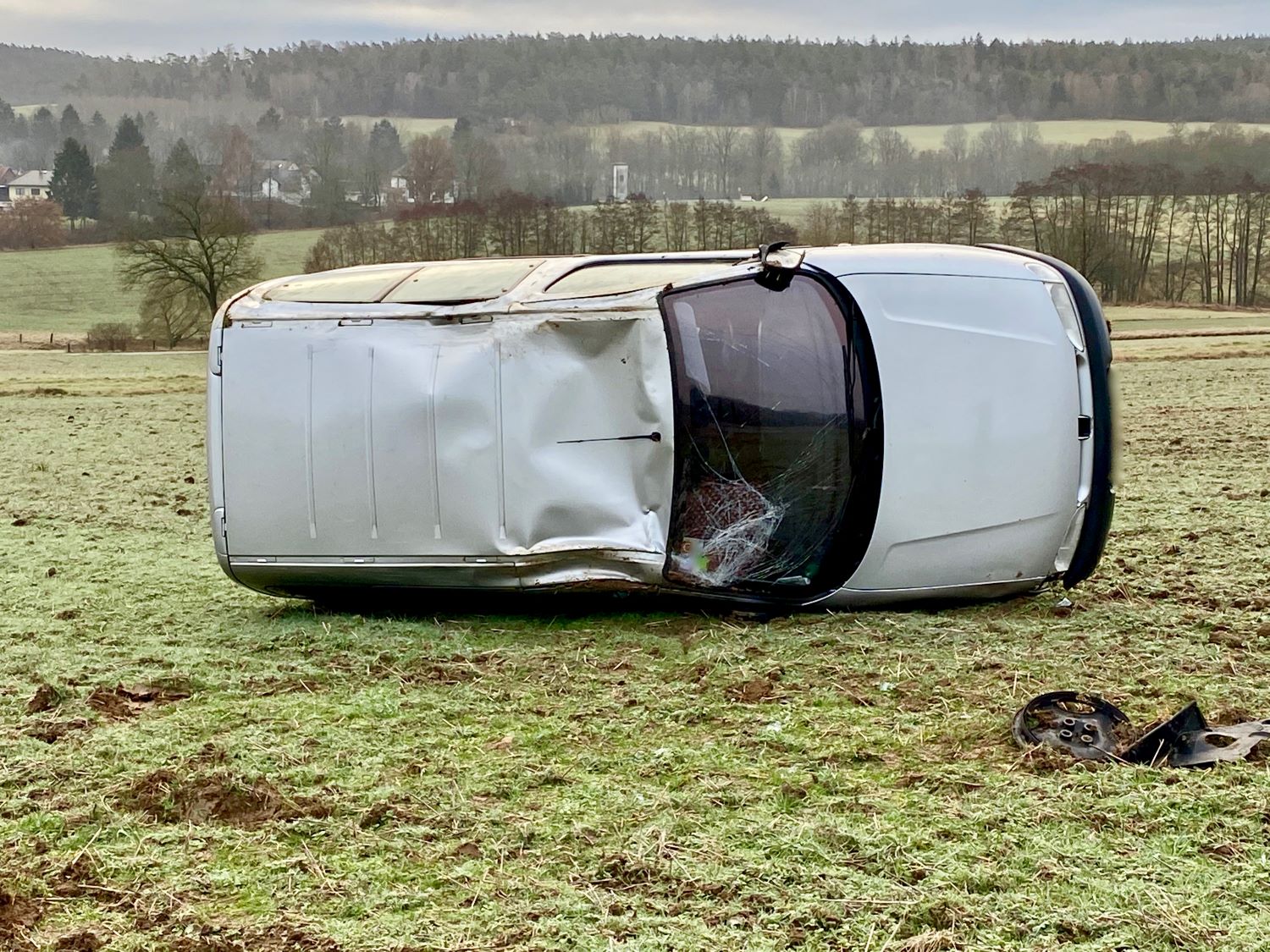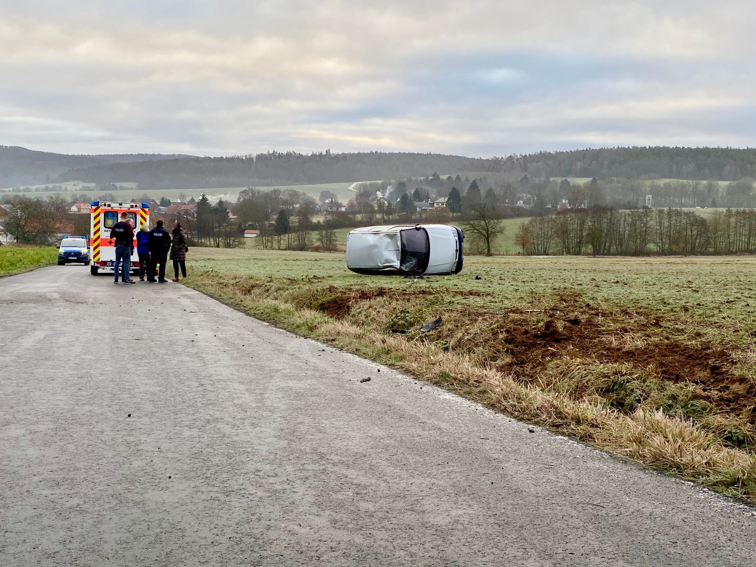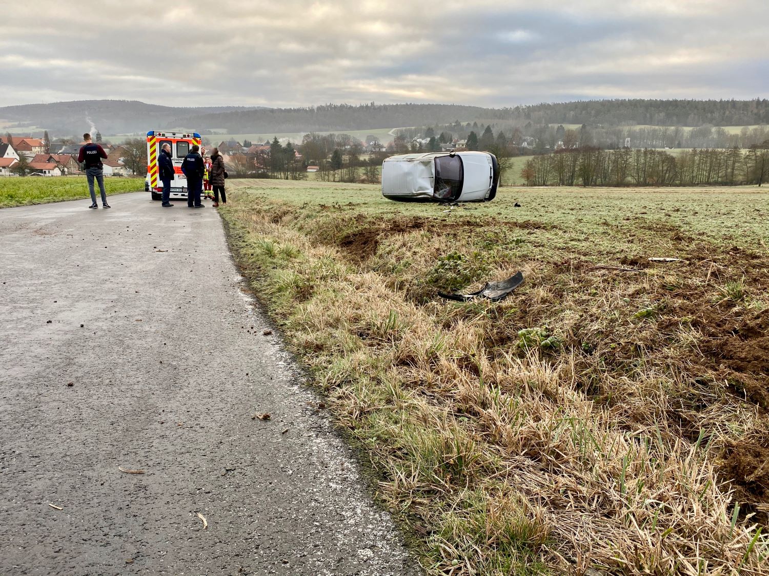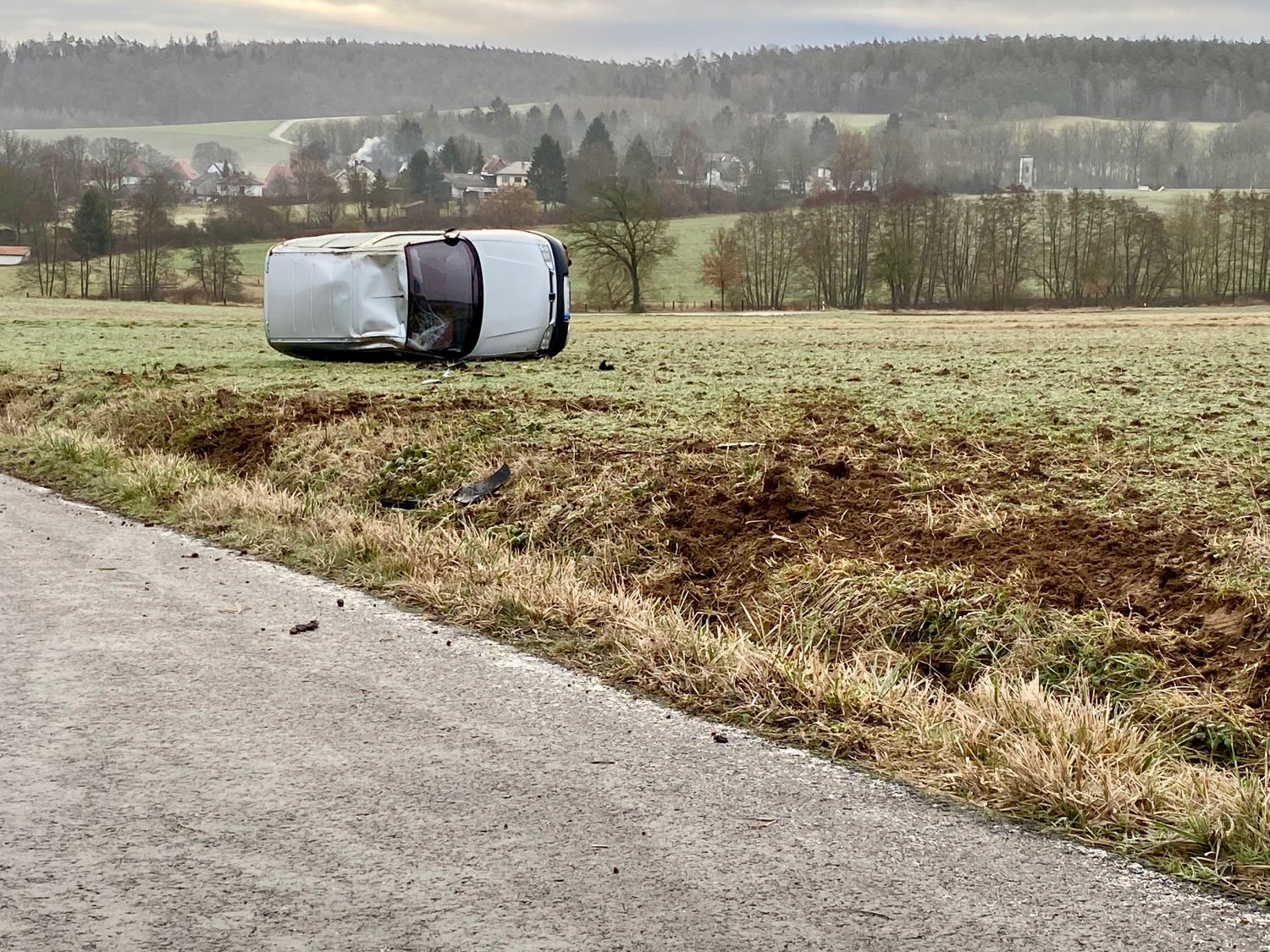 Die 53-jährige Autofahrerin aus Freiburg war aufgrund der glatten Fahrbahn mit ihrem Fahrzeug ausgangs einer Linkskurve nach rechts von der Fahrbahn abgekommen und hatte einen Straßengraben durchfahren. Im Verlauf drehte und überschlug sich das Fahrzeug und kam auf der Beifahrerseite liegend auf einem Acker zum Stillstand.