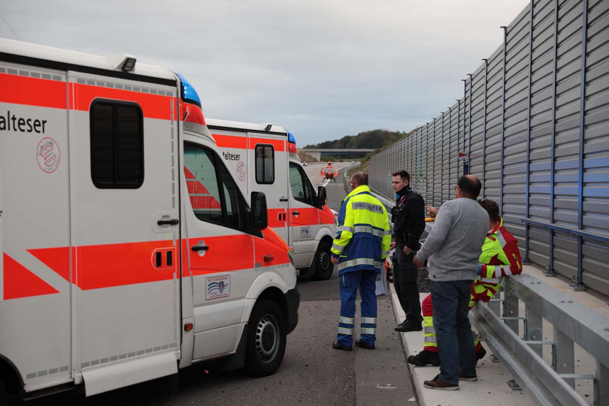 Vor Ort waren zwei Rettungsteams des Malteser Hilfsdienstes, drei Rettungsteams des DRKs, ein Notarzt aus Homberg, die Crew des Rettungshubschraubers Christoph 7 aus Kassel, ein Leitender Notarzt sowie ein Organisatorischer Leiter Rettungsdienst und eine Streifenwagenbesatzung der Polizeiautobahnstation Baunatal.