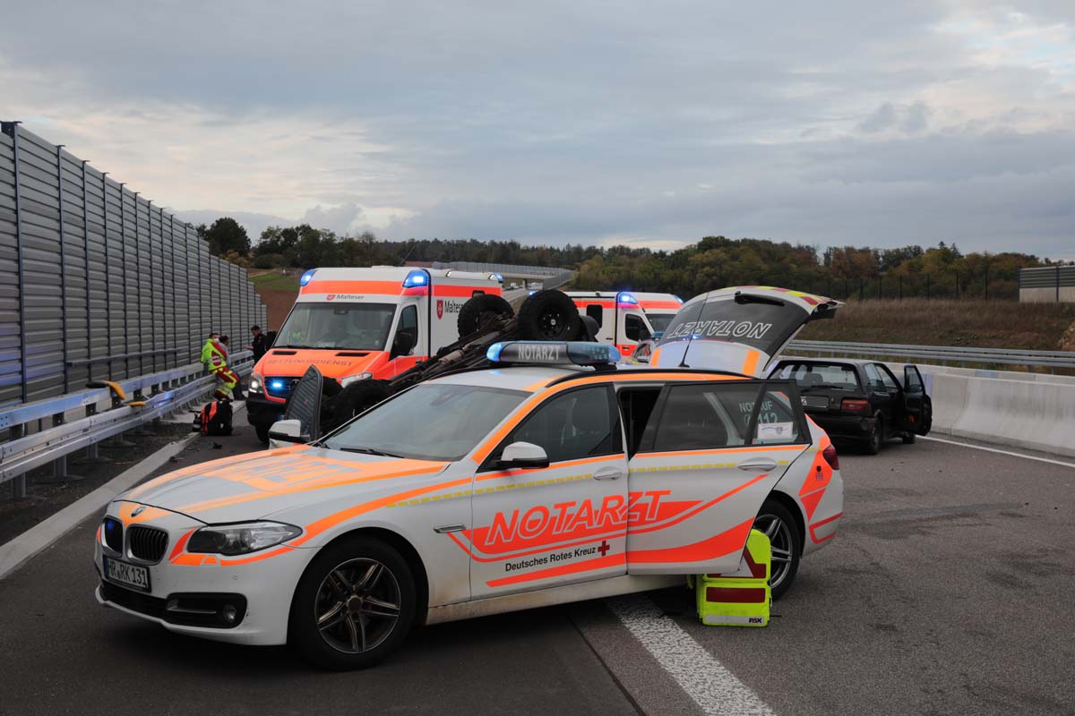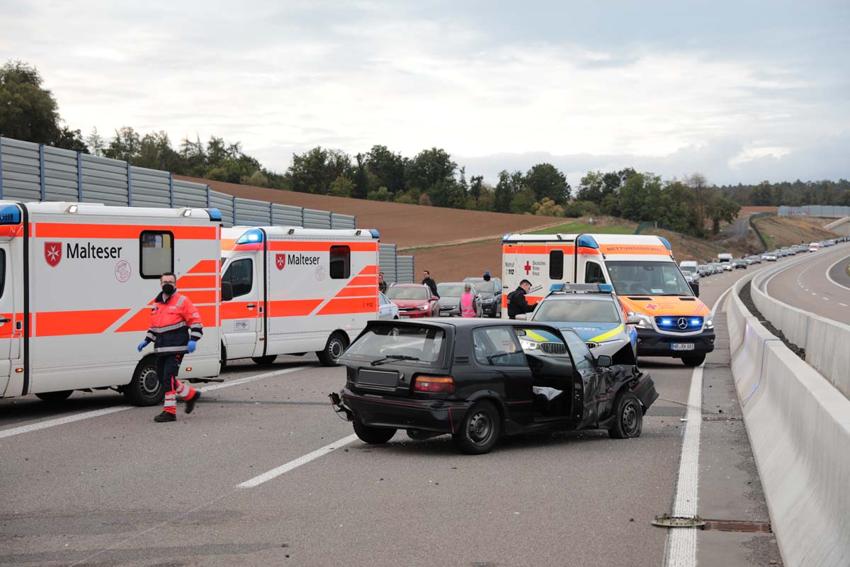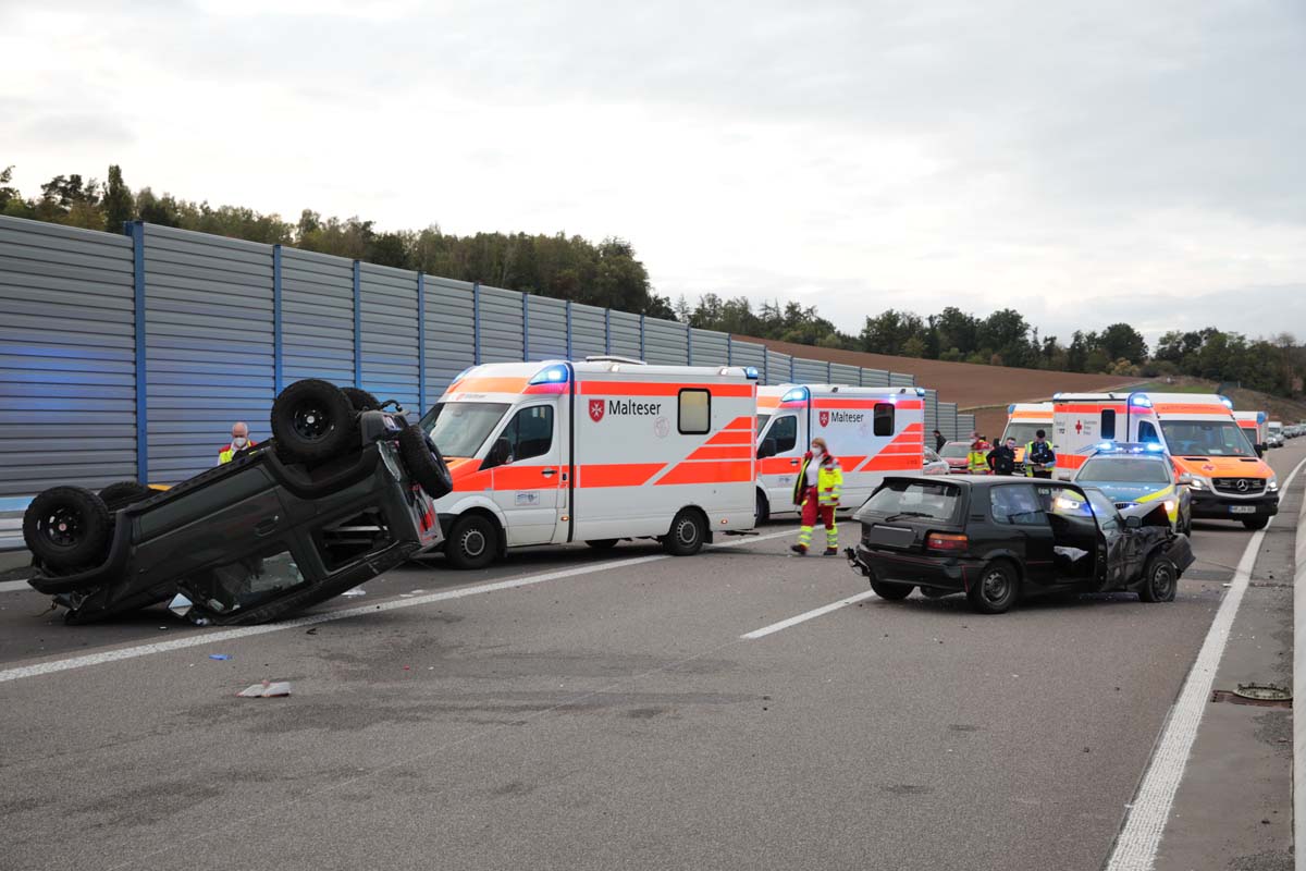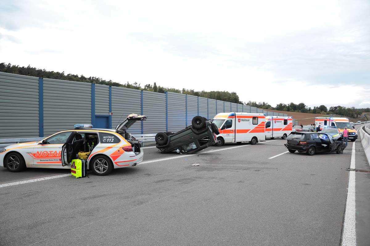 Gegen 17:40 Uhr fuhr der Fahrer eines Audi (49) aus Marburg, nach eigenen Angaben, mit rund 180 km/h, auf der linken Fahrspurt in Richtung Schwalmstadt. In Höhe von Schlierbach wollte zu diesem Zeitpunkt eine 61 Jahre alte Frau aus Schrecksbach mit ihrem Toyota einen vorausfahrenden Suzuki überholen, dessen Fahrer aus Schwalmstadt (58) mit rund 80 km/h auf dem rechten Fahrstreifen fuhr. Die 61-Jährige zog auf den linken Fahrsteifen und missachtete dabei den herannahenden 49-Jährigen aus Marburg. Der Marburger bremste dem Spurenbild zufolge noch stark ab, konnte einen Zusammenprall mit dem Pkw der 61-Jährigen aber nicht mehr verhindern. Durch den Aufprall wurde der Toyota zunächst gegen die rechte Leitplanke und dann gegen den Suzuki geschleudert. Der Suzuki des Schwalmstädters überschlug sich und kam auf dem Dach liegend zum Stillstand. Der Toyota prallte noch gegen die Betonbegrenzung der Autobahnabtrennung, der Audi-Fahrer konnte am rechten Fahrbahnrand der Autobahn stoppen.