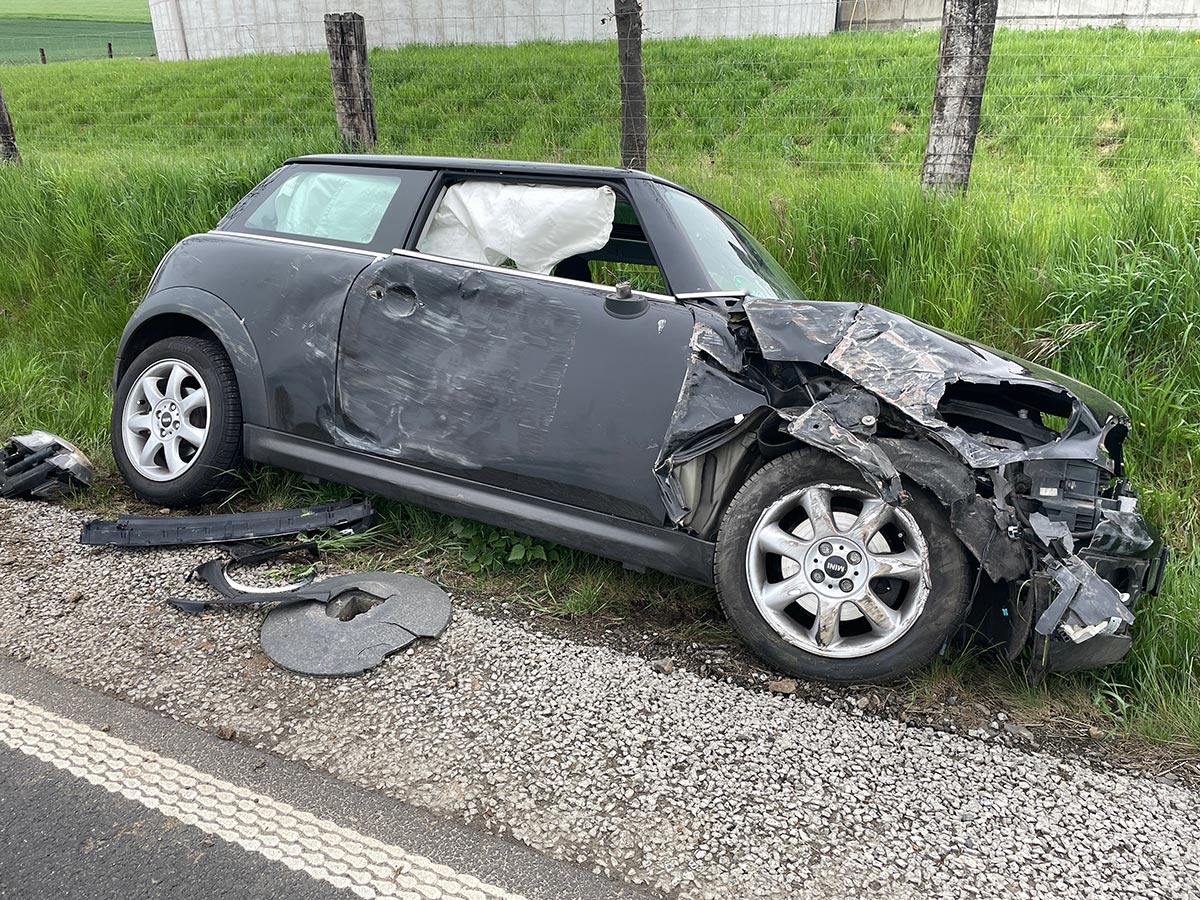 Sie war zur Unfallzeit hinter einem Traktor-Gespann von Felsberg in Richtung Wabern unterwegs und überholte. Als sie sich mit ihrem Mini neben dem Schlepper befand, wollte der 25 Jahre alte Fahrer der landwirtschaftlichen Maschine nach links in einen Wirtschaftsweg abbiegen. Durch den Aufprall wurde der Kleinwagen in den Straßengraben „gedrückt“, durchfuhr diesen einige Meter und kam dann zum Stillstand.