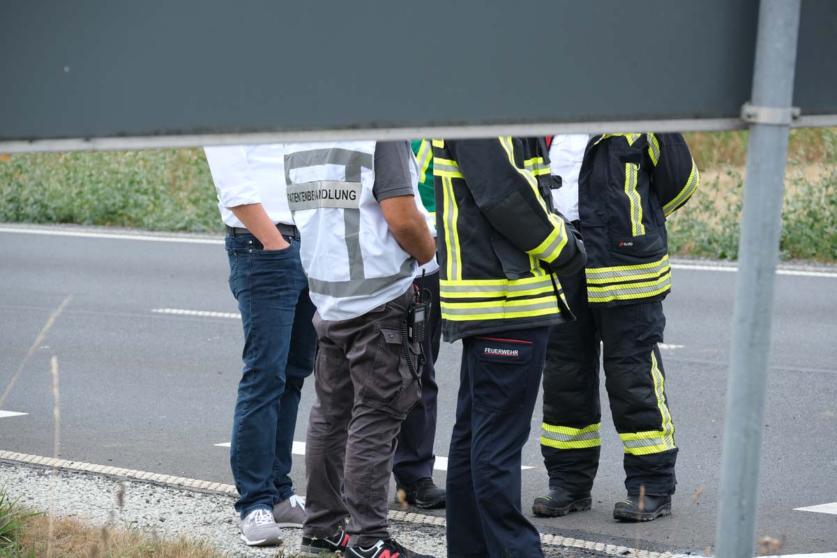 Da die Lage zunächst sehr unübersichtlich war, alarmierte die Disponenten der Leitstelle mehrere Rettungsteams, Notärzte, das örtliche DRK sowie einen Organisatorischen Leiter Rettungsdienst und einen Leitenden Notarzt aus Schwalmstadt. Zudem war die Crew des Rettungshubschraubers Christoph 7 kurzzeitig an der Unfallstelle. Mehrere Streifenwagenbesatzungen der Polizei sperrten den Bereich der Unfallstelle weiträumig ab und nahmen den Unfall auf. Vor Ort waren zudem Kreisbrandinspektorin Tanja Dittmar, ein Mitarbeiter der Landesfeuer- und Katastrophenschutzschule des Landes Sachsen und Verwaltungsangestellte des DRKs Schwalm-Eder.