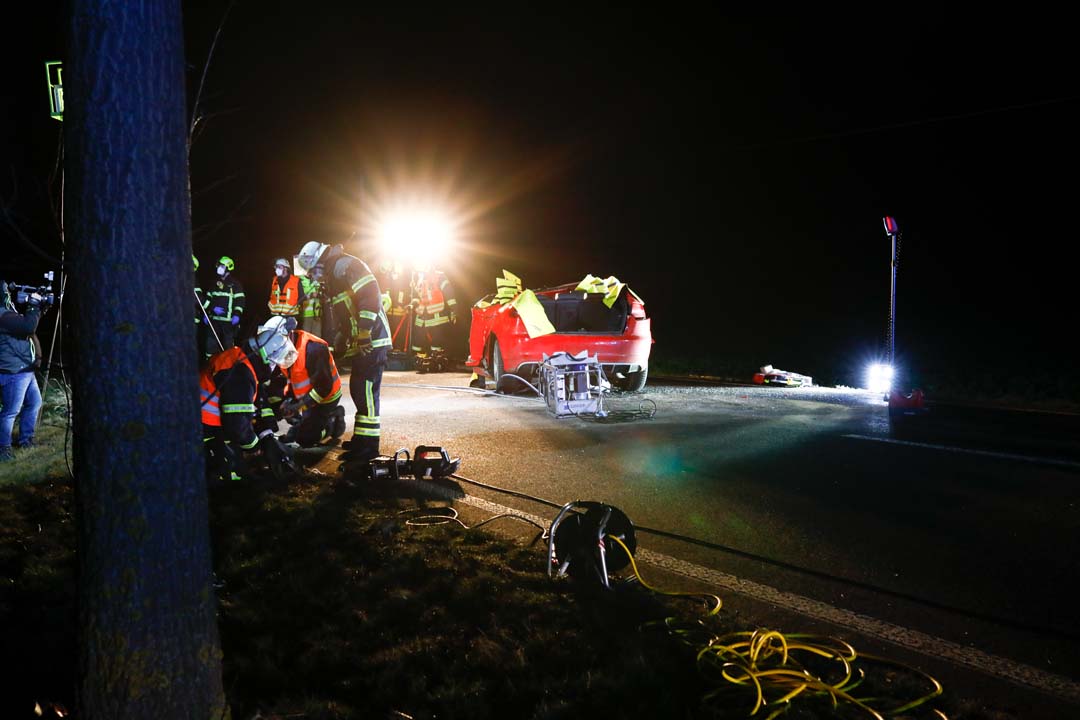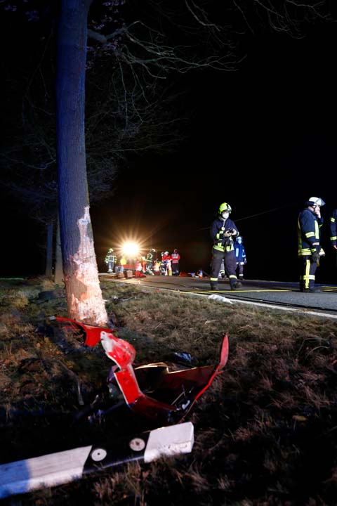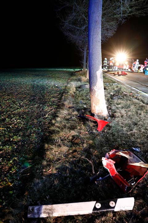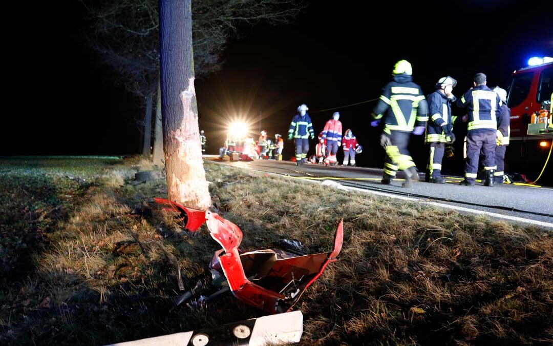 Der junge Mann war mit seinem Audi auf der B 254 zwischen Niedervorschütz und Wabern-Niedermöllrich unterwegs. Aus bislang unbekannter Ursache geriet der Pkw in einer lang gezogenen Rechtskurve nach links von der Bundesstraße ab. Das Auto prallte gegen zwei Bäume, die in einigen Metern Entfernung an der Fahrbahn in Richtung Niedervorschütz stehen. Der Pkw wurde dabei auf der Fahrerseite massiv beschädigt und im Anschluss über die Straße auf die Richtungsfahrbahn Niedermöllrich geschleudert.